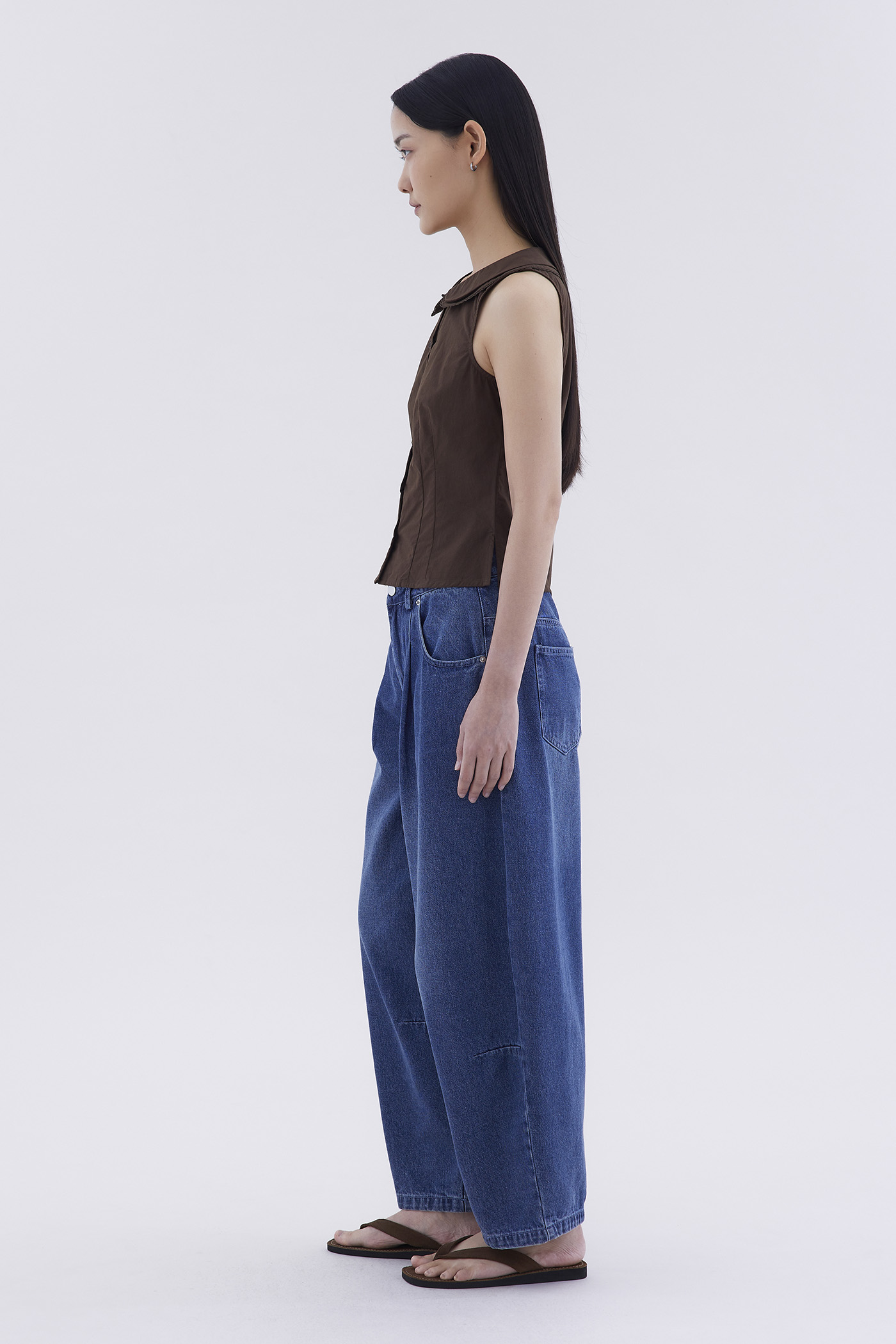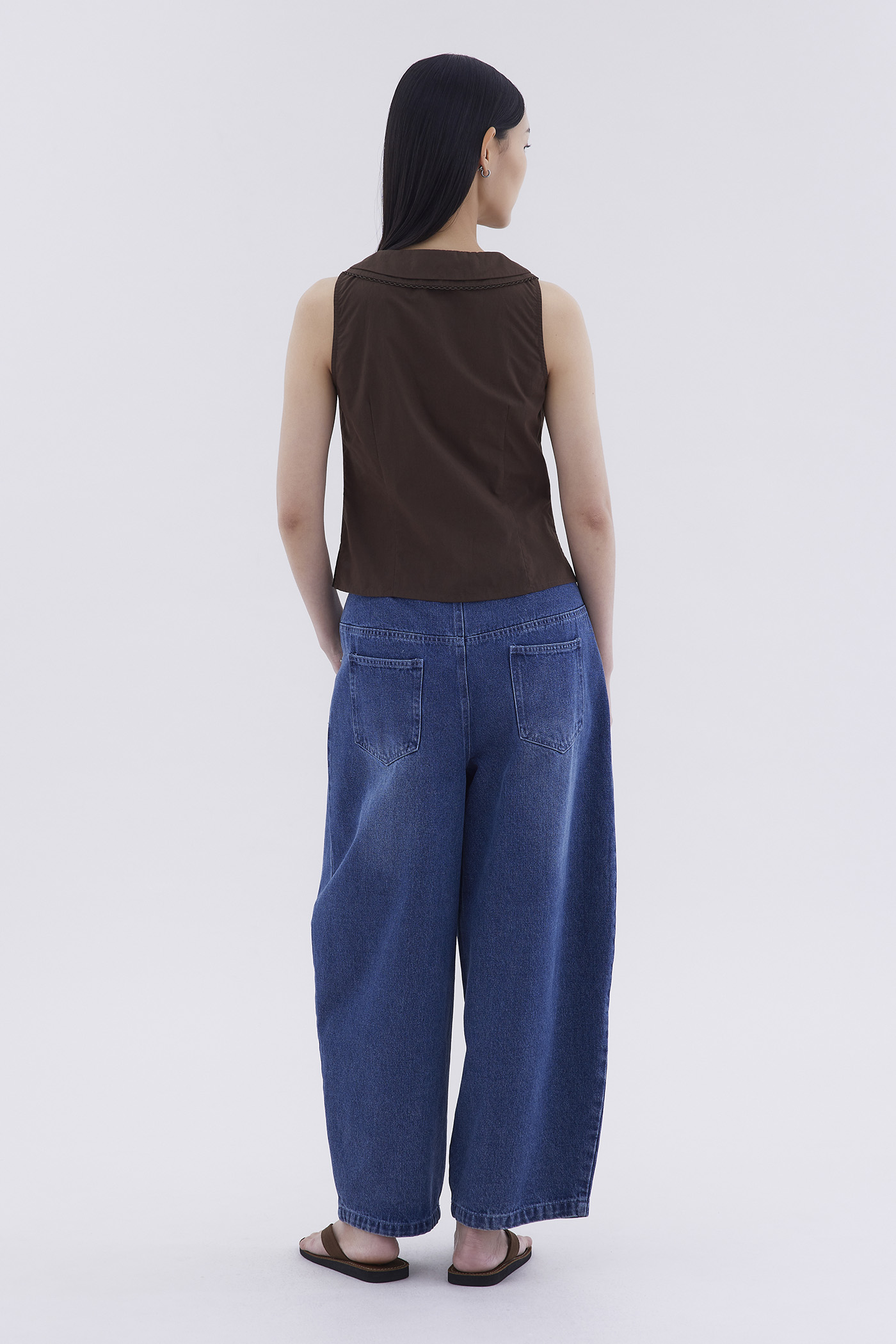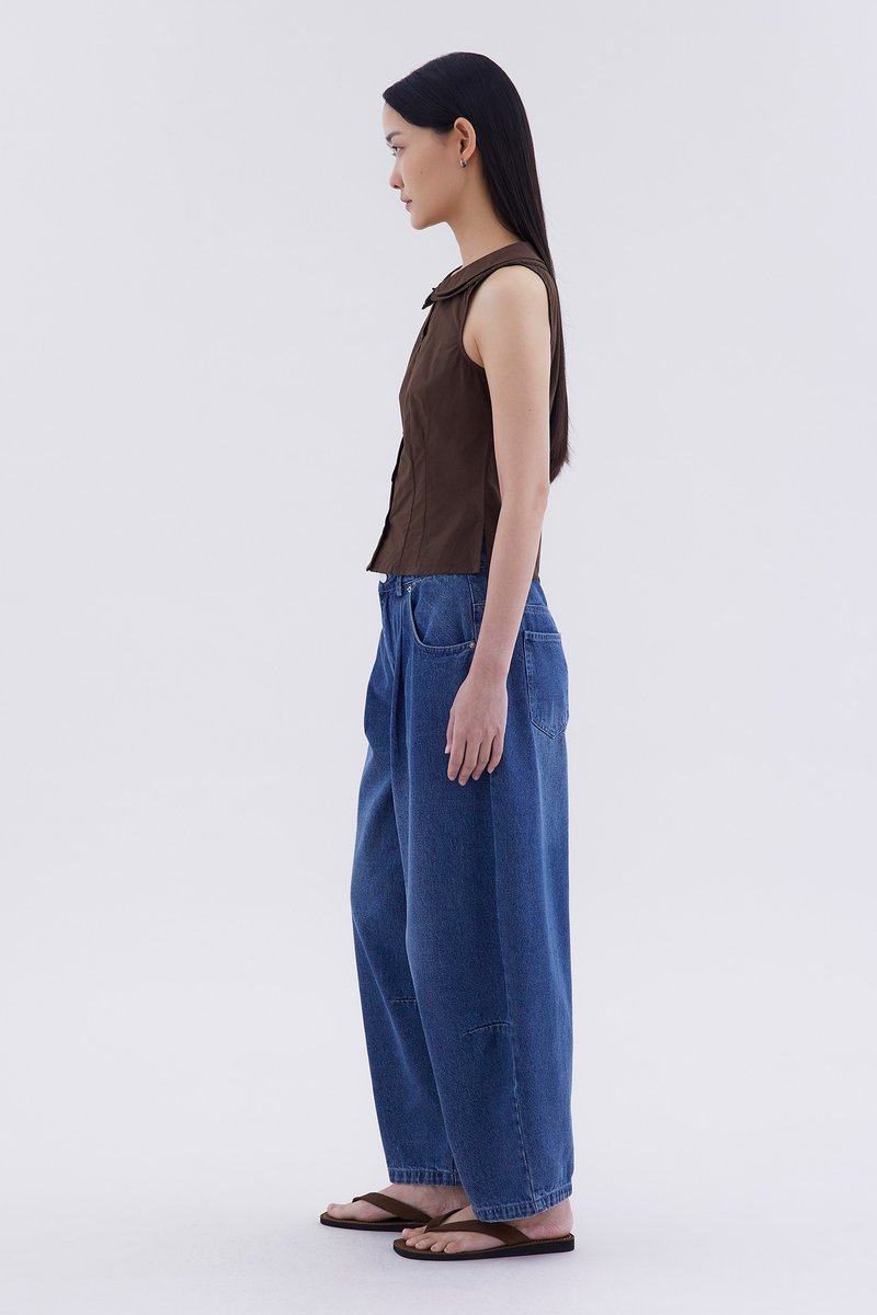 Playful touches. Made from crisp and softly structured cotton, this sleeveless shirt features layered, lace-trimmed collars, a round neckline, panelled construction and button-down front. Worn in a slim fit.