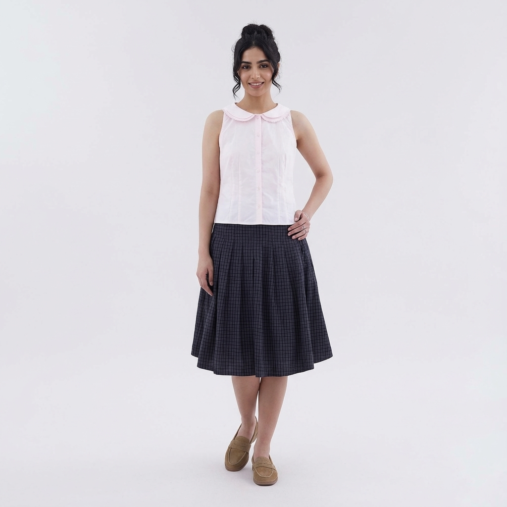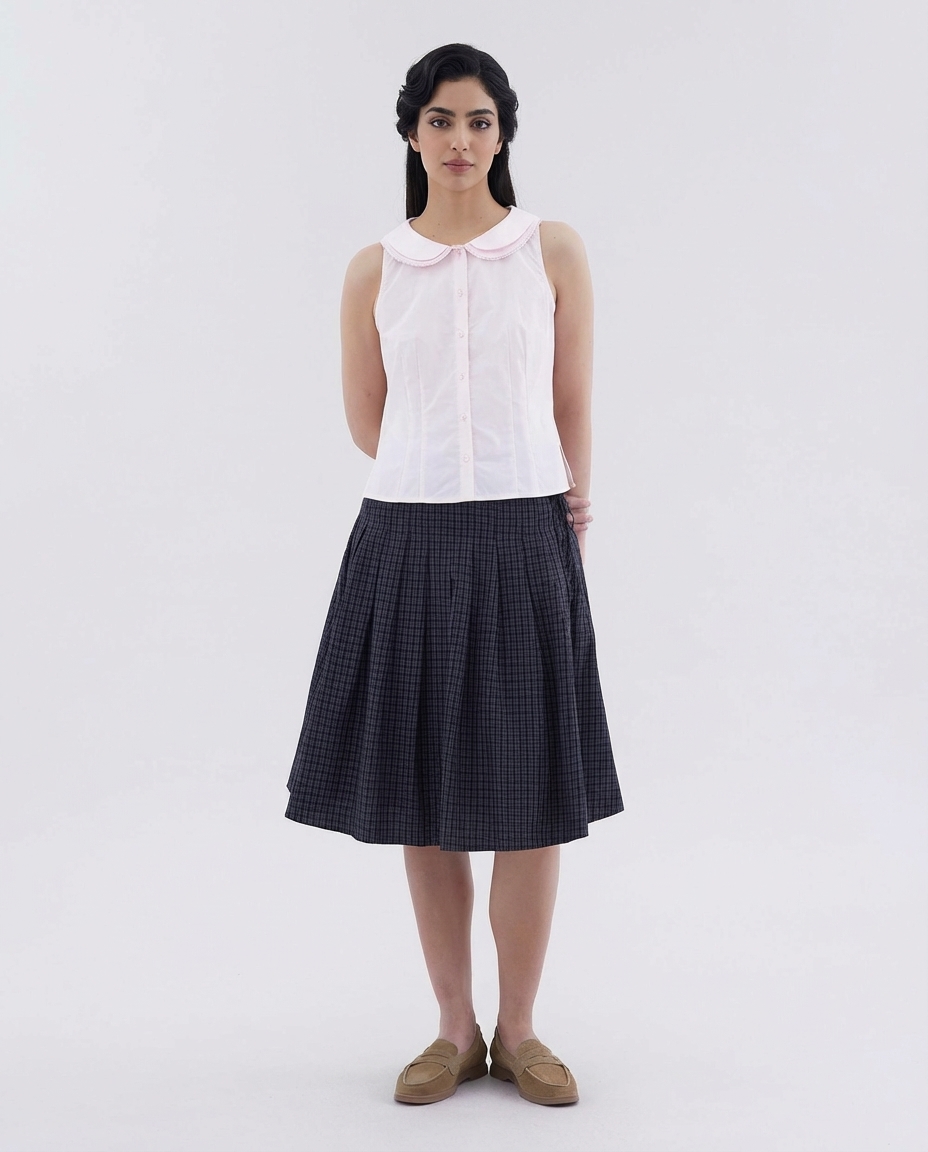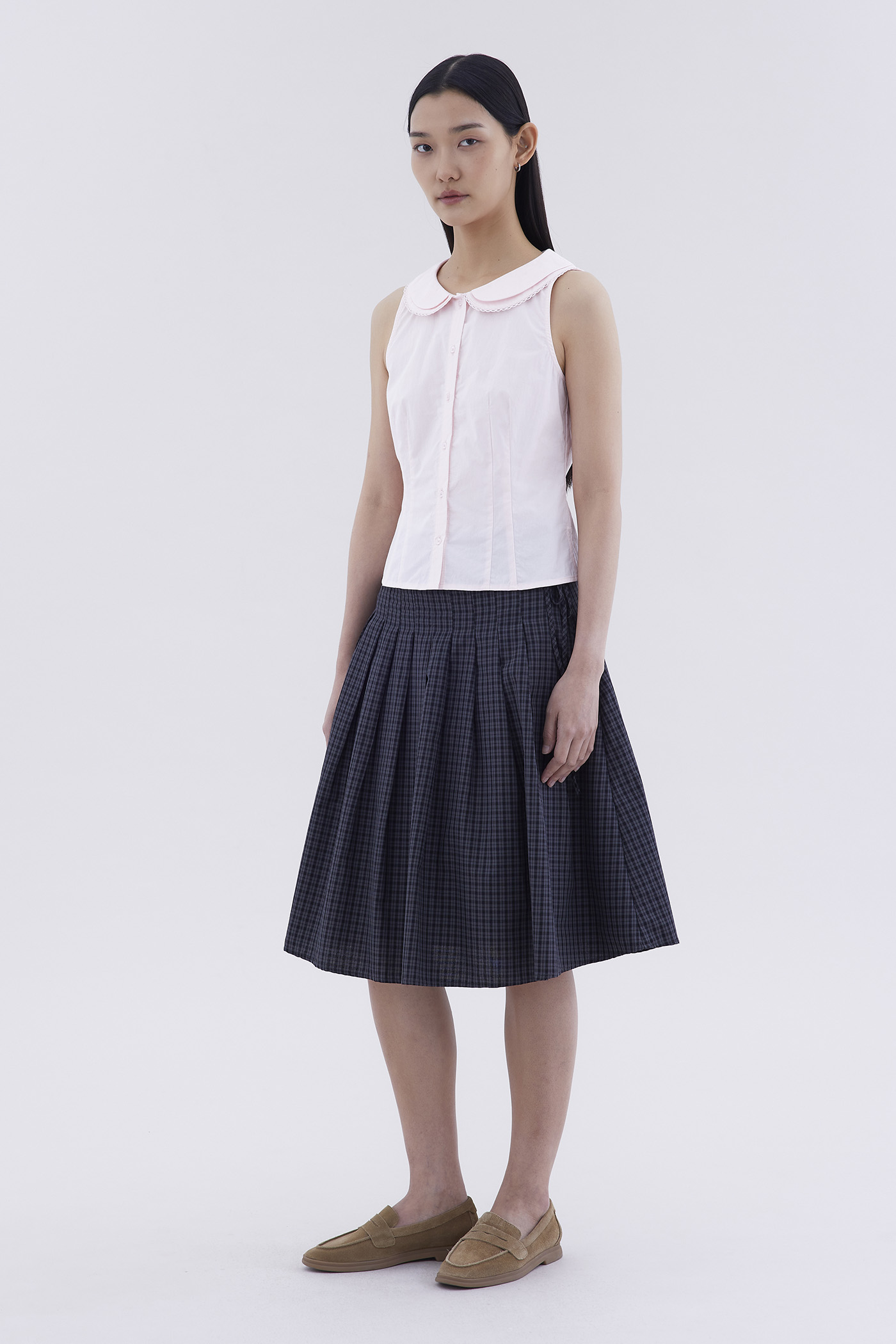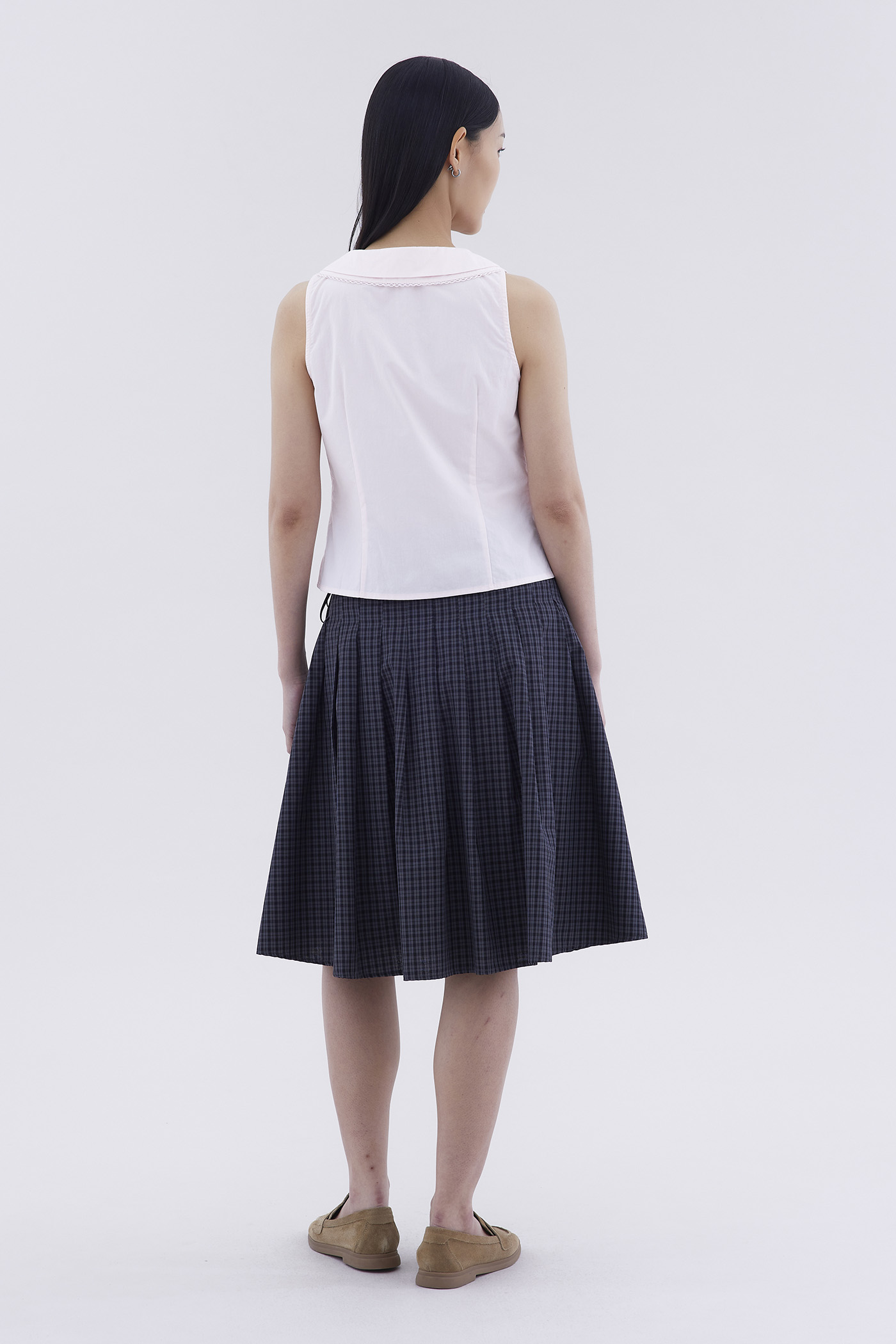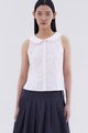 Playful touches. Made from crisp and softly structured cotton, this sleeveless shirt features layered, lace-trimmed collars, a round neckline, panelled construction and button-down front. Worn in a slim fit.