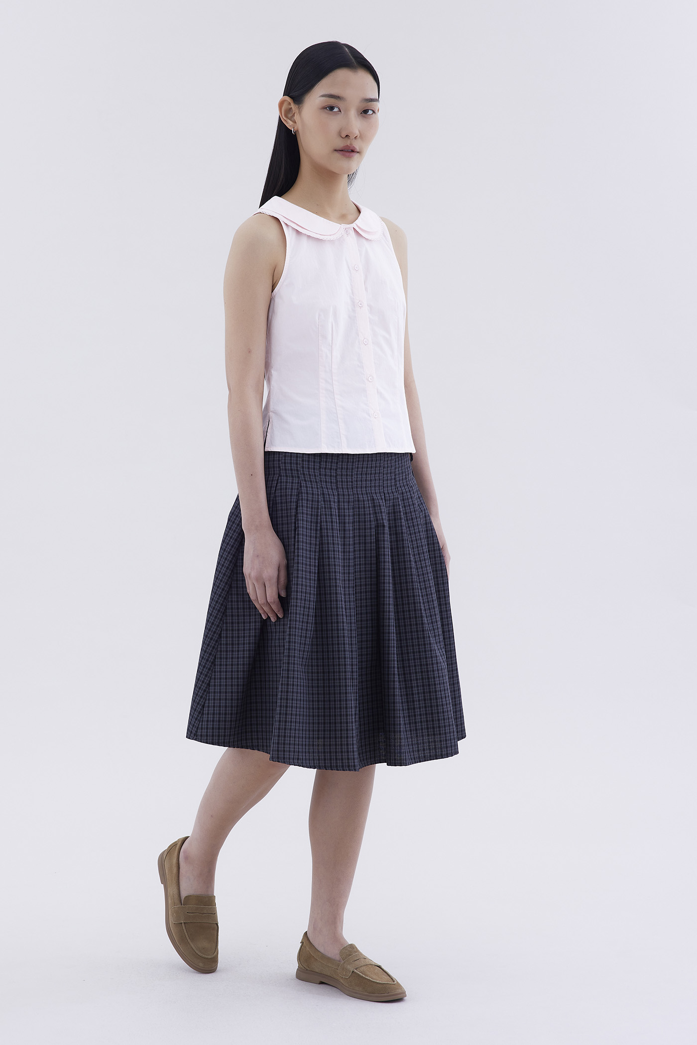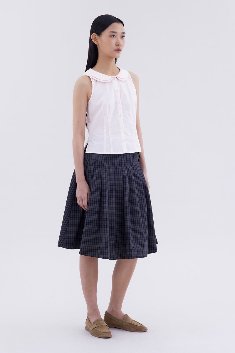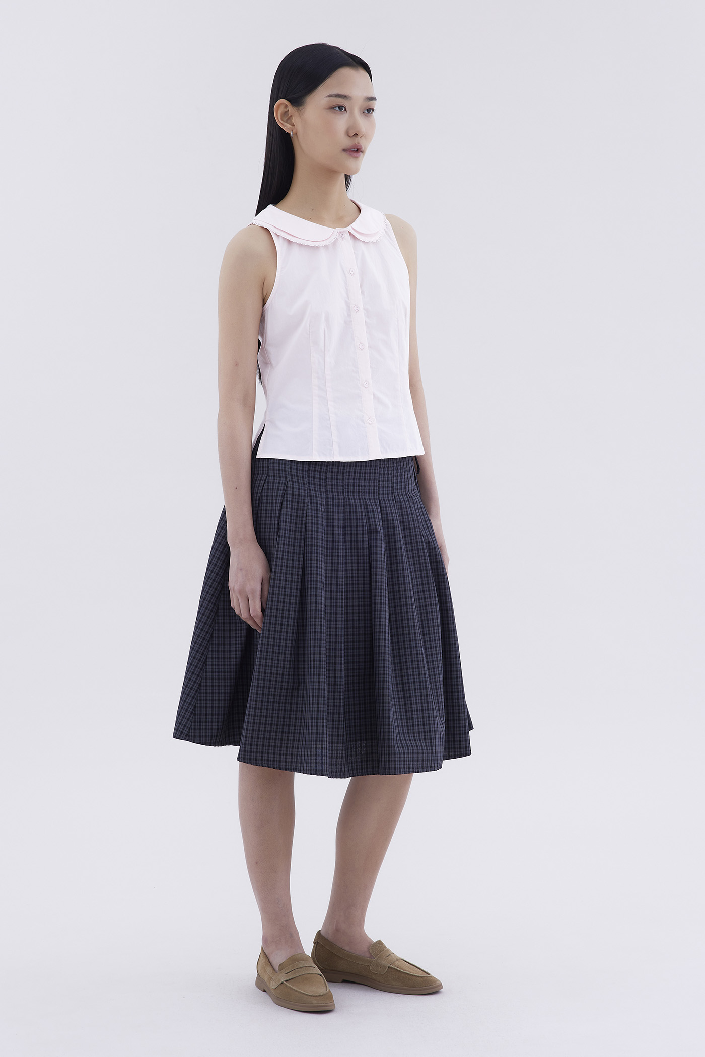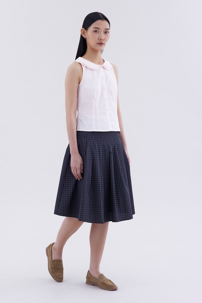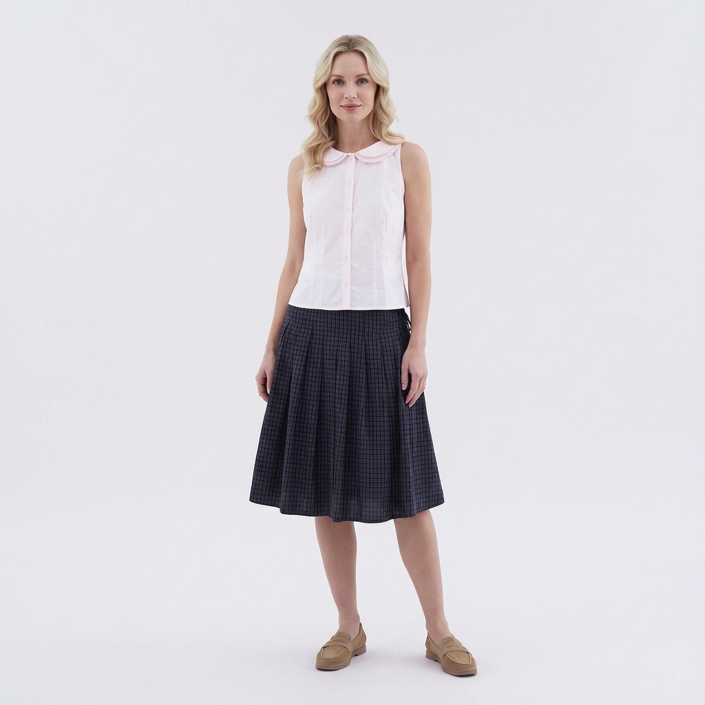 Playful touches. Made from crisp and softly structured cotton, this sleeveless shirt features layered, lace-trimmed collars, a round neckline, panelled construction and button-down front. Worn in a slim fit.
