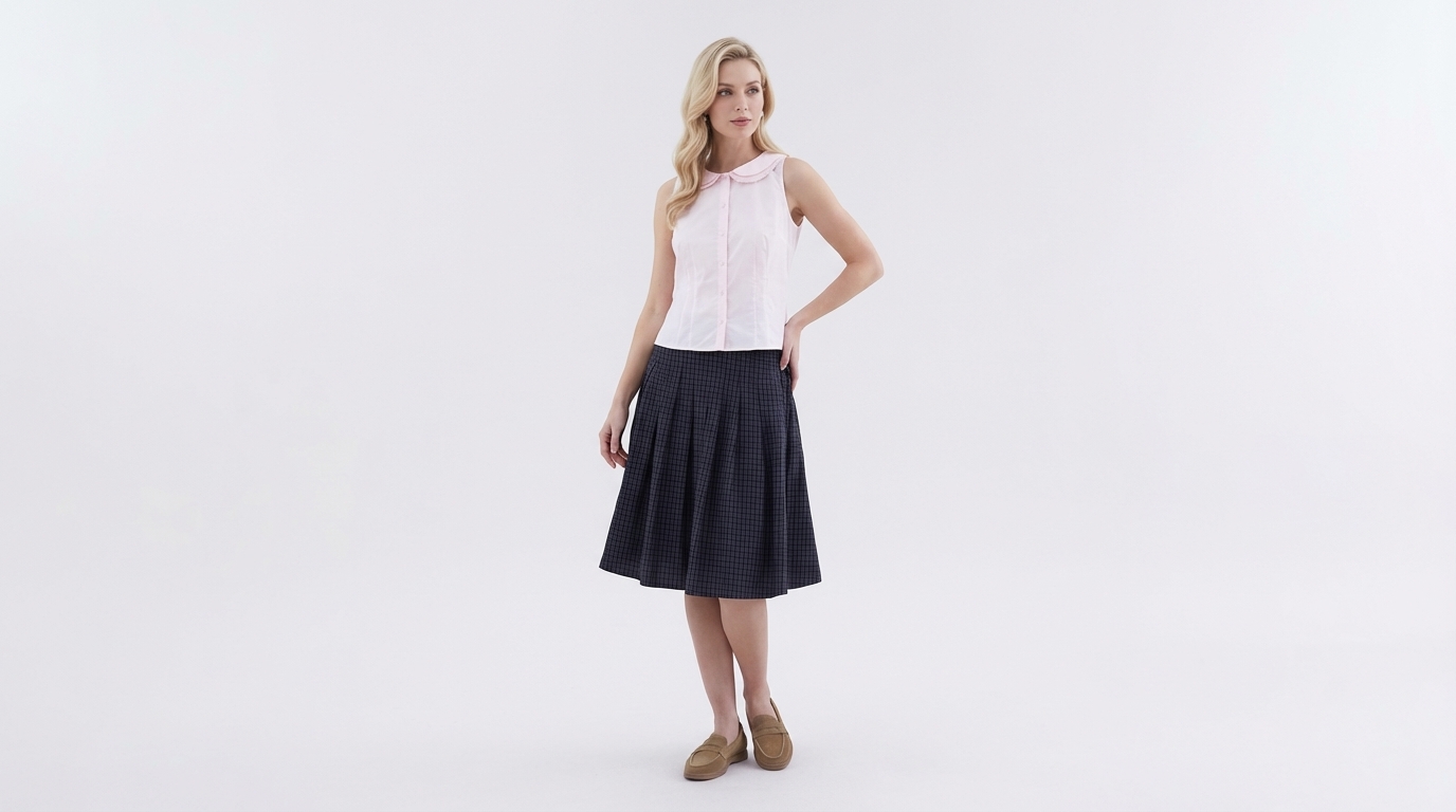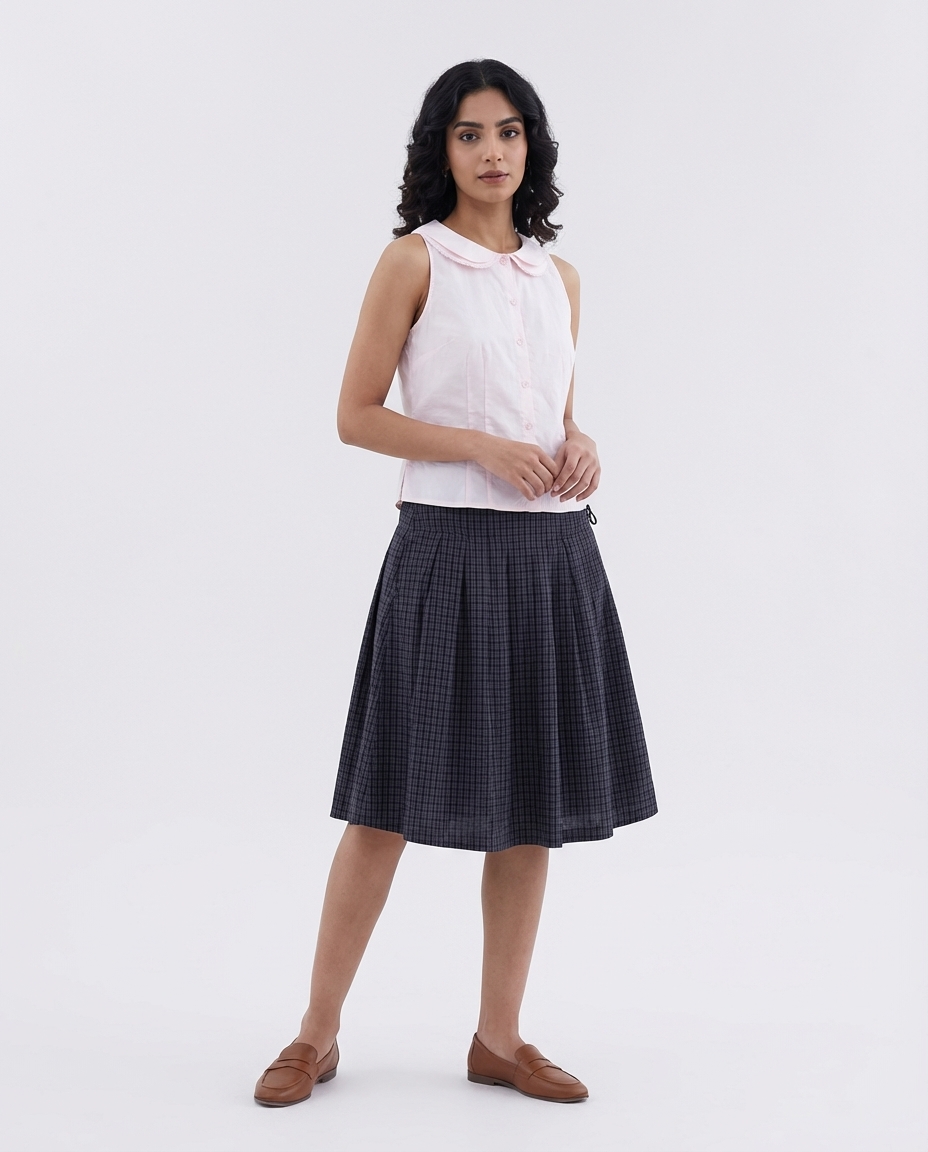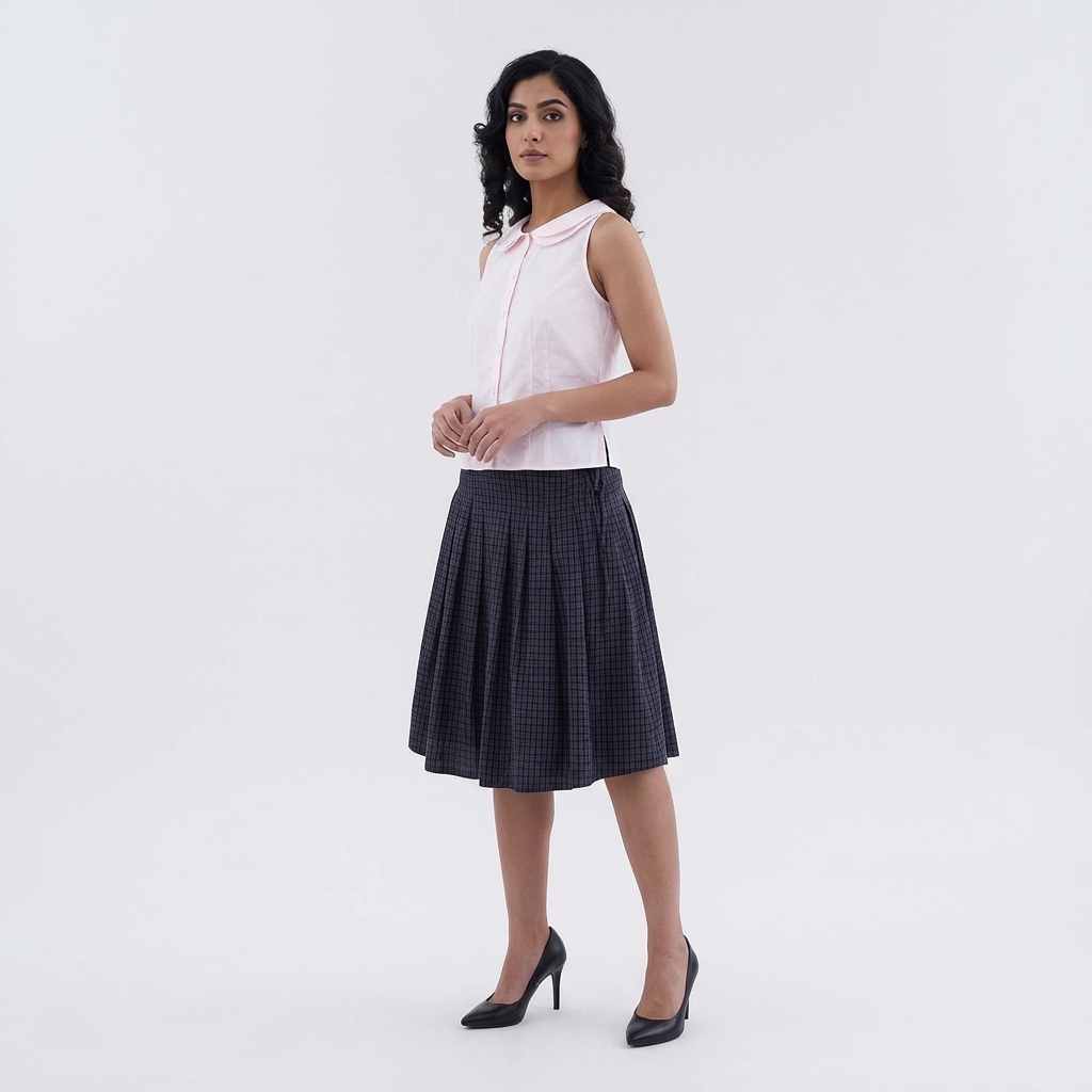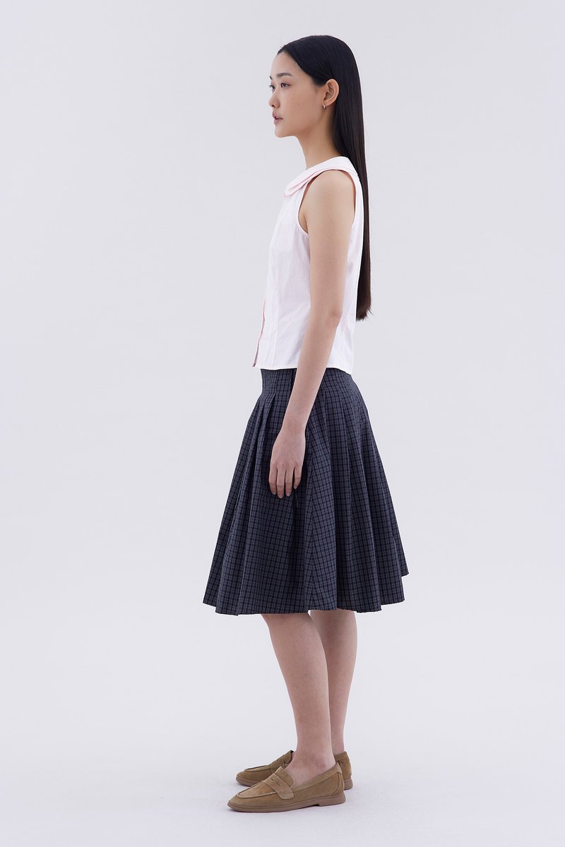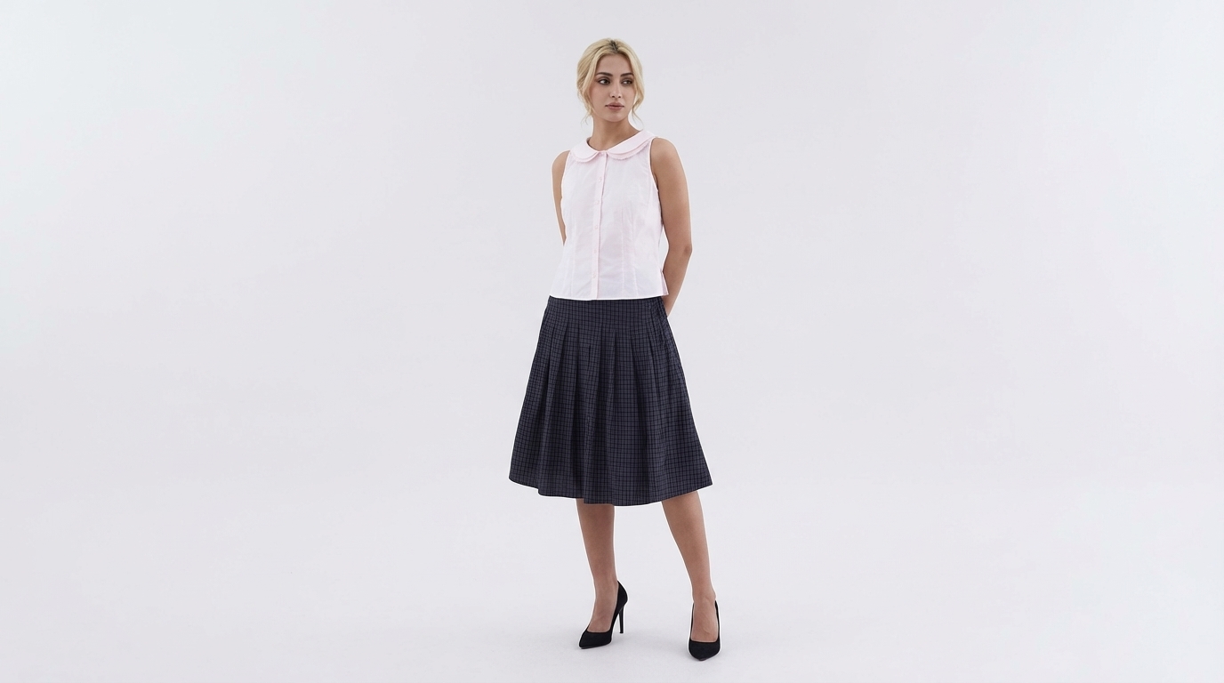 Playful touches. Made from crisp and softly structured cotton, this sleeveless shirt features layered, lace-trimmed collars, a round neckline, panelled construction and button-down front. Worn in a slim fit.