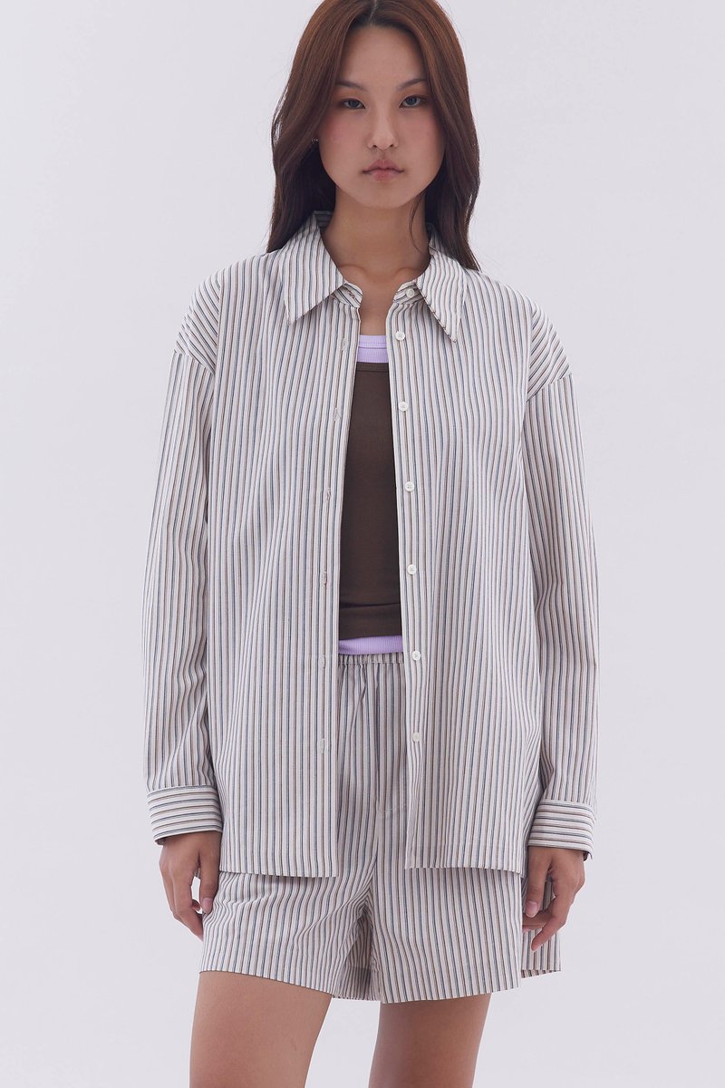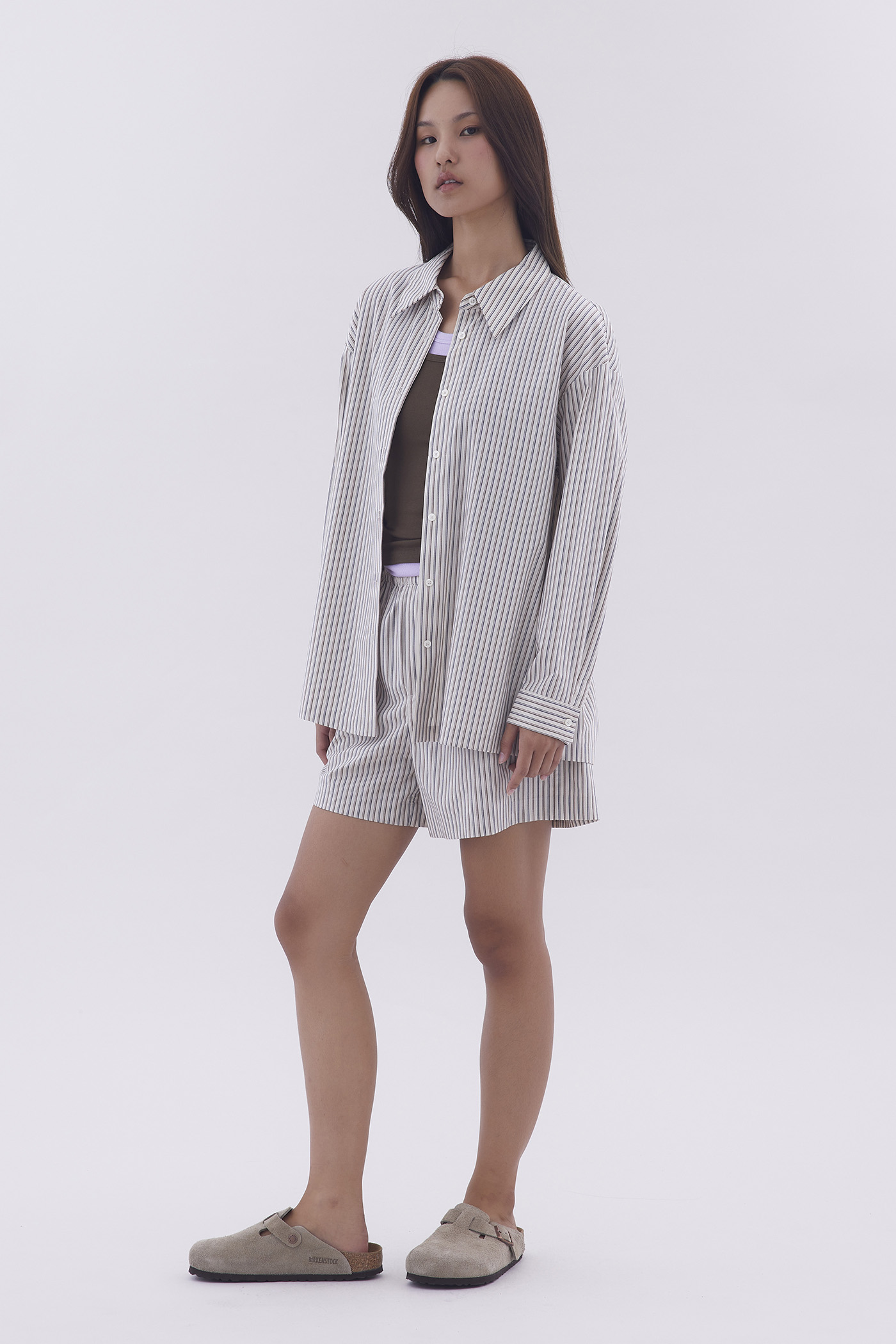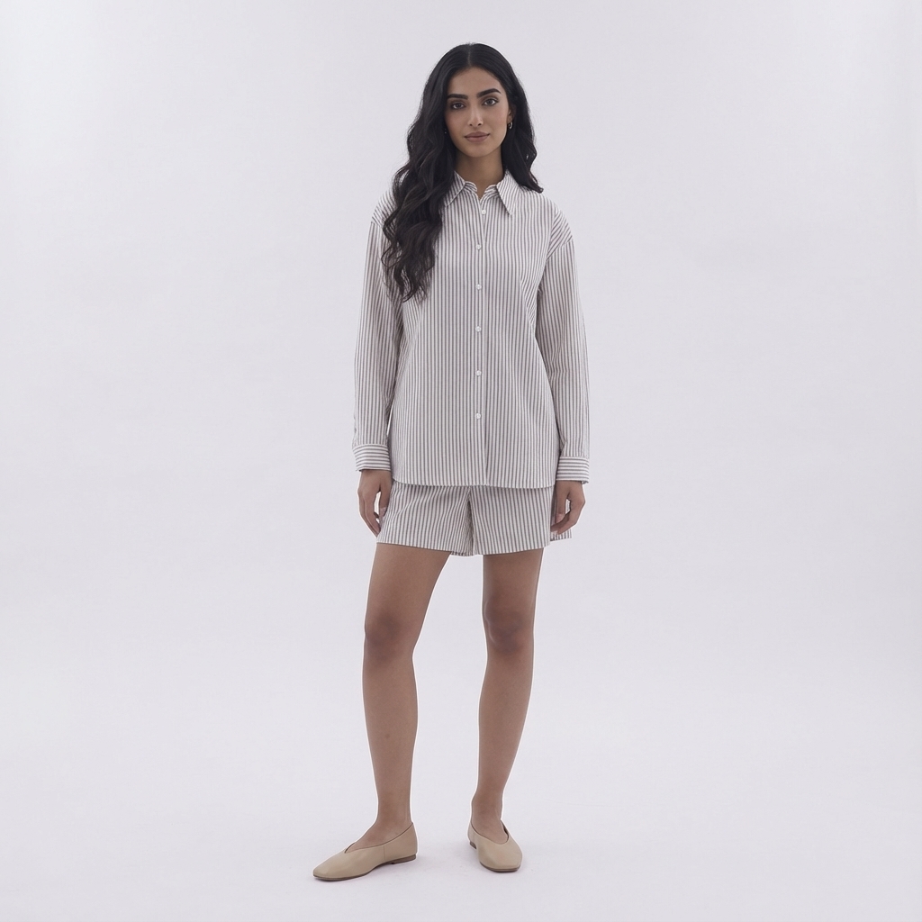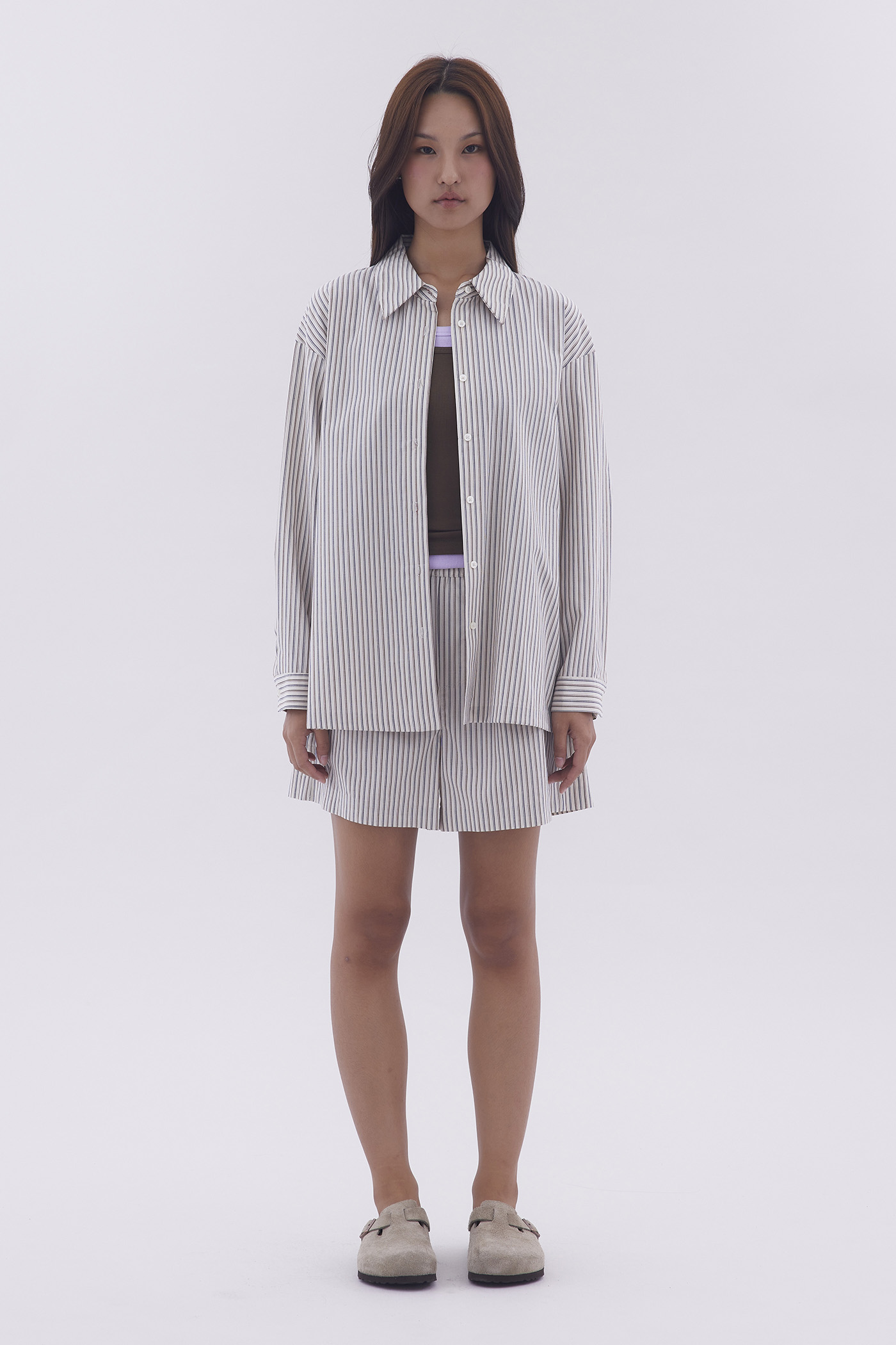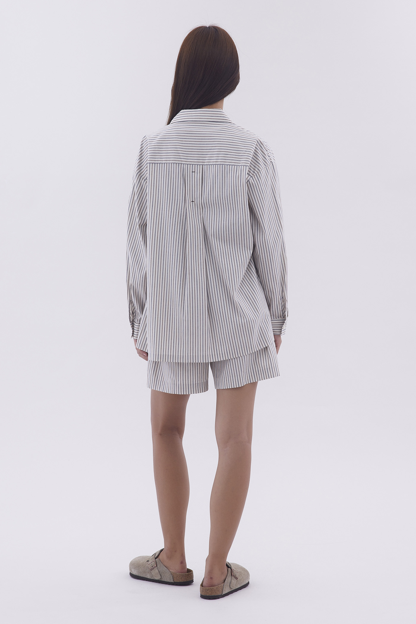 Cut from crisp and comfy cotton, this unisex button-down shirt features buttoned sleeves and a stitched back pleat. Worn in an oversized fit. Comes with a spare button.
