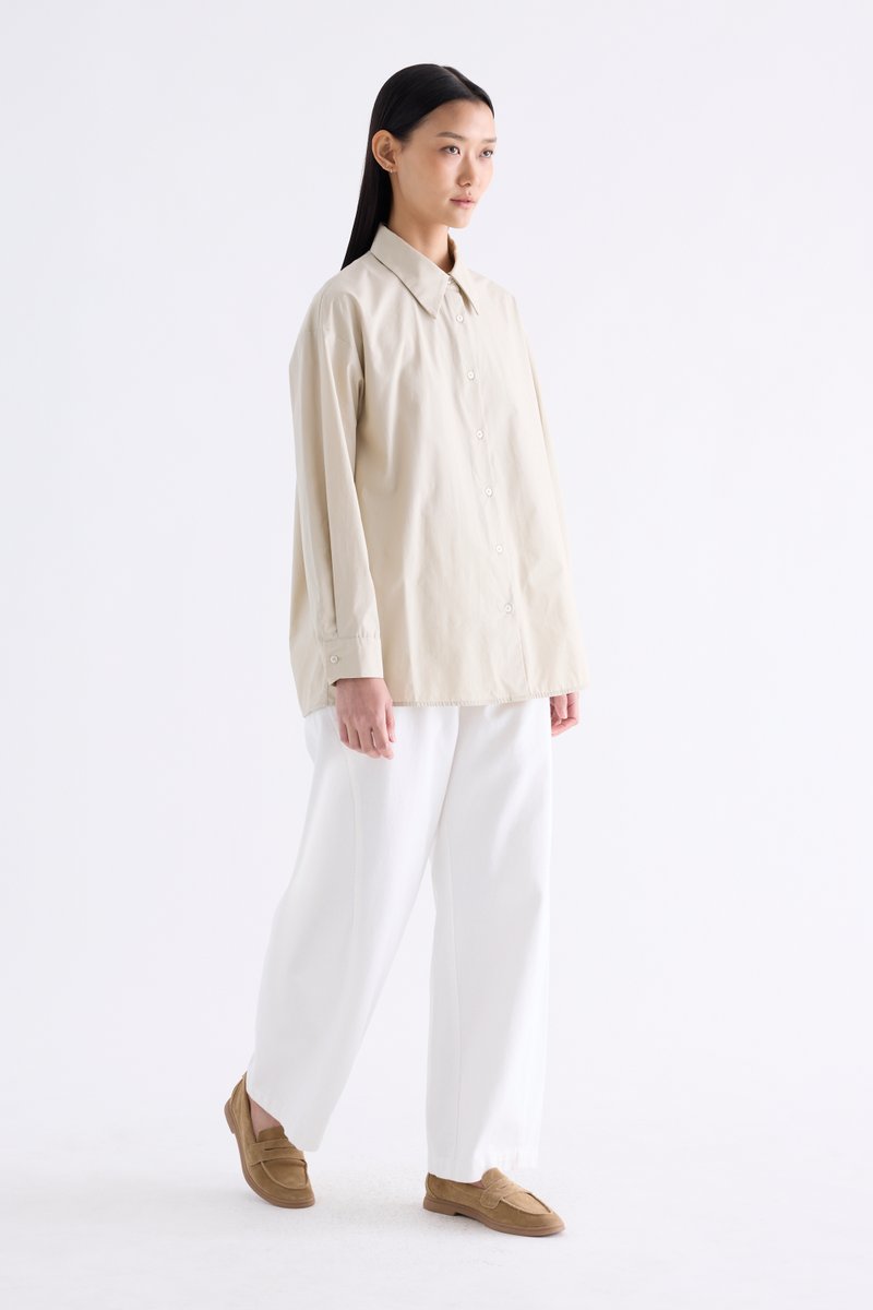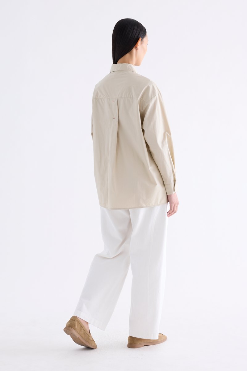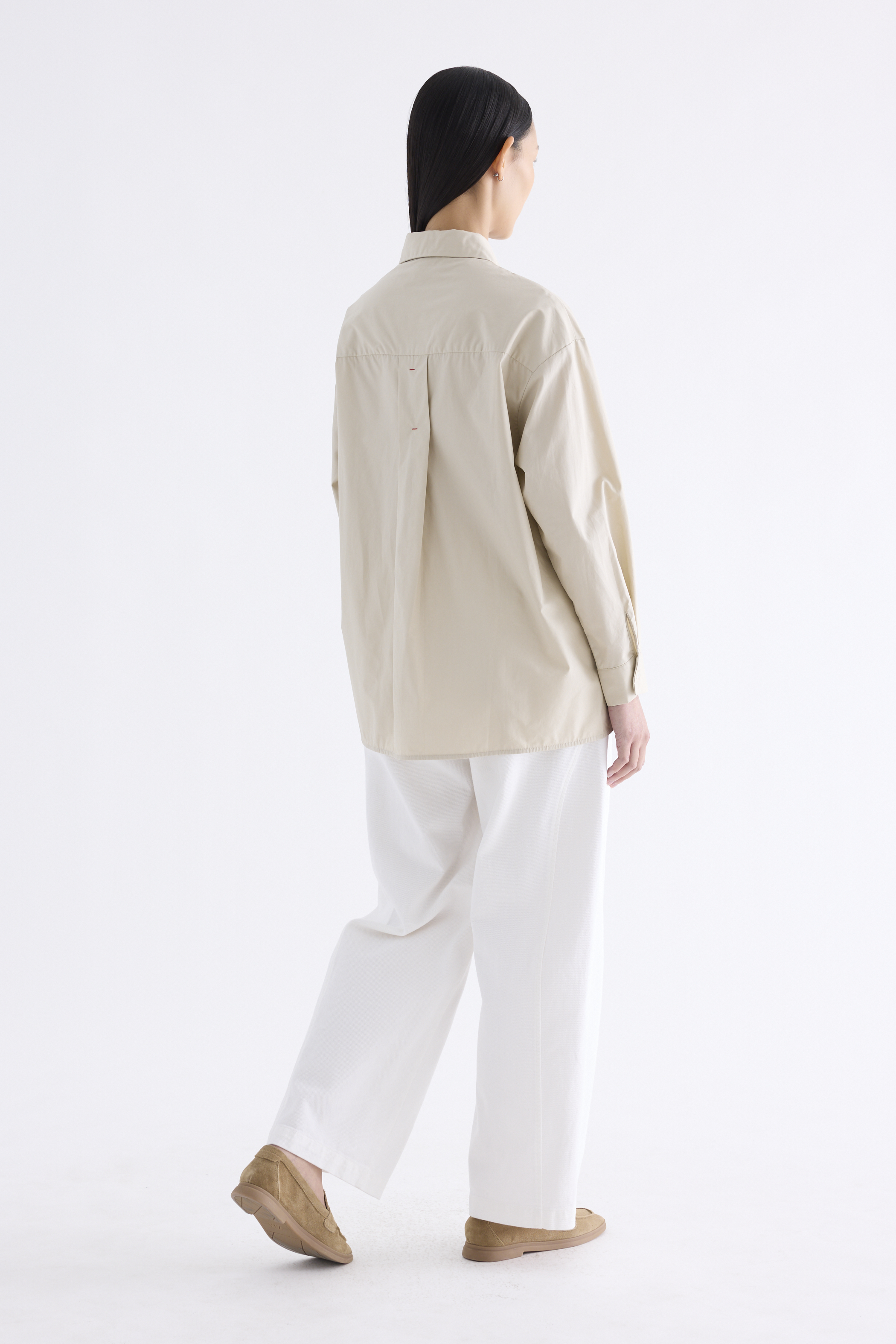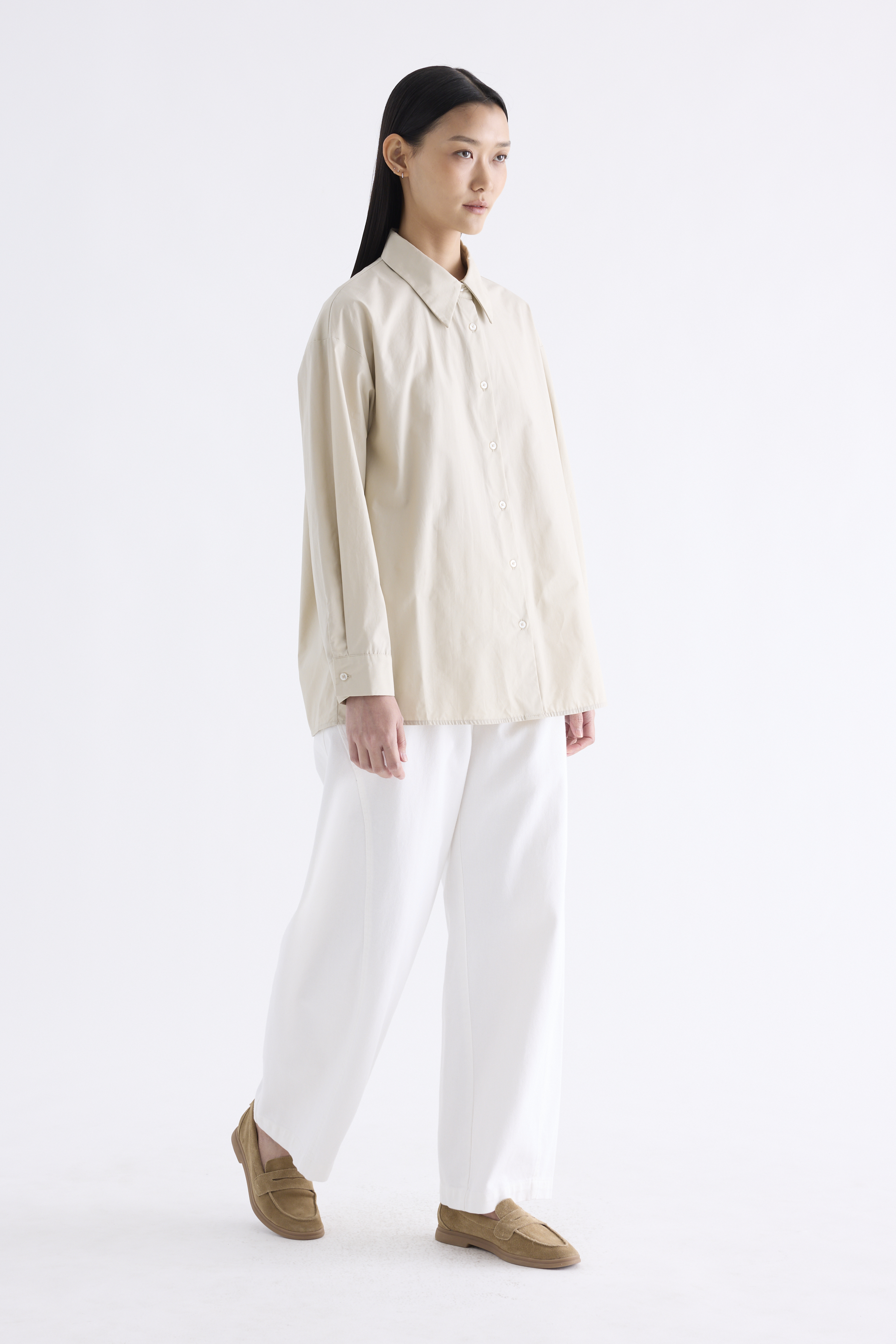 Cut from crisp and comfy cotton, this unisex button-down shirt features buttoned sleeves and a stitched back pleat. Worn in an oversized fit. Comes with a spare button.
