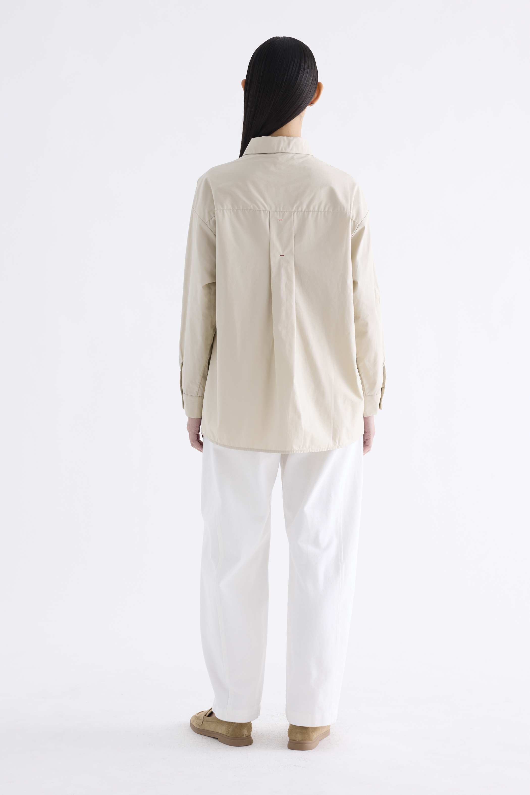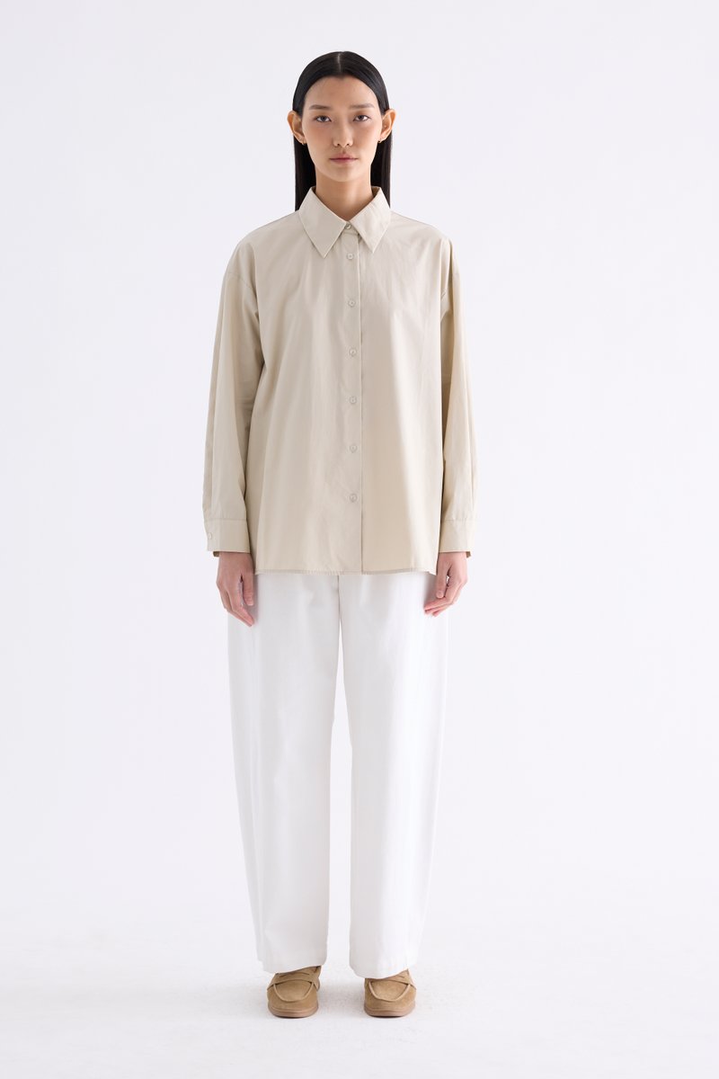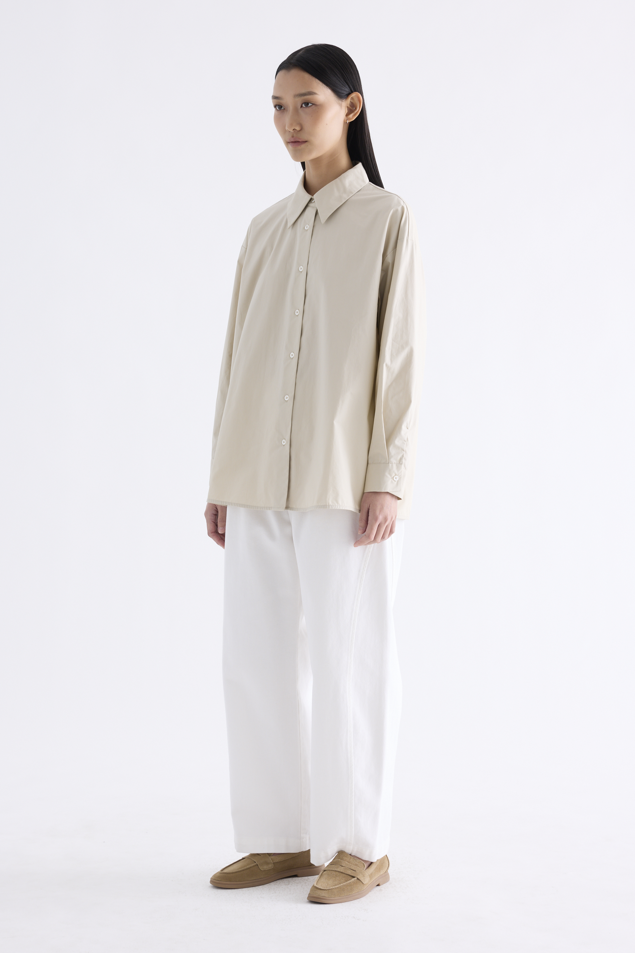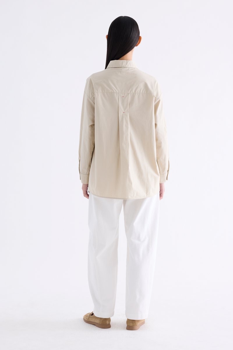 Cut from crisp and comfy cotton, this unisex button-down shirt features buttoned sleeves and a stitched back pleat. Worn in an oversized fit. Comes with a spare button.