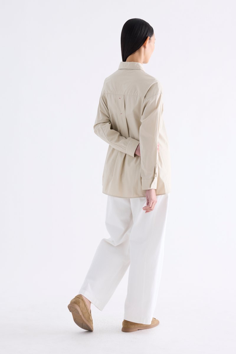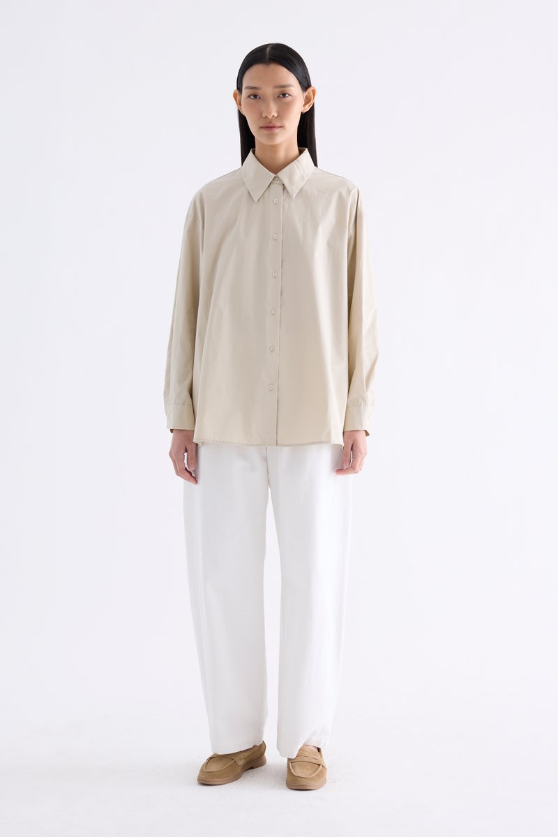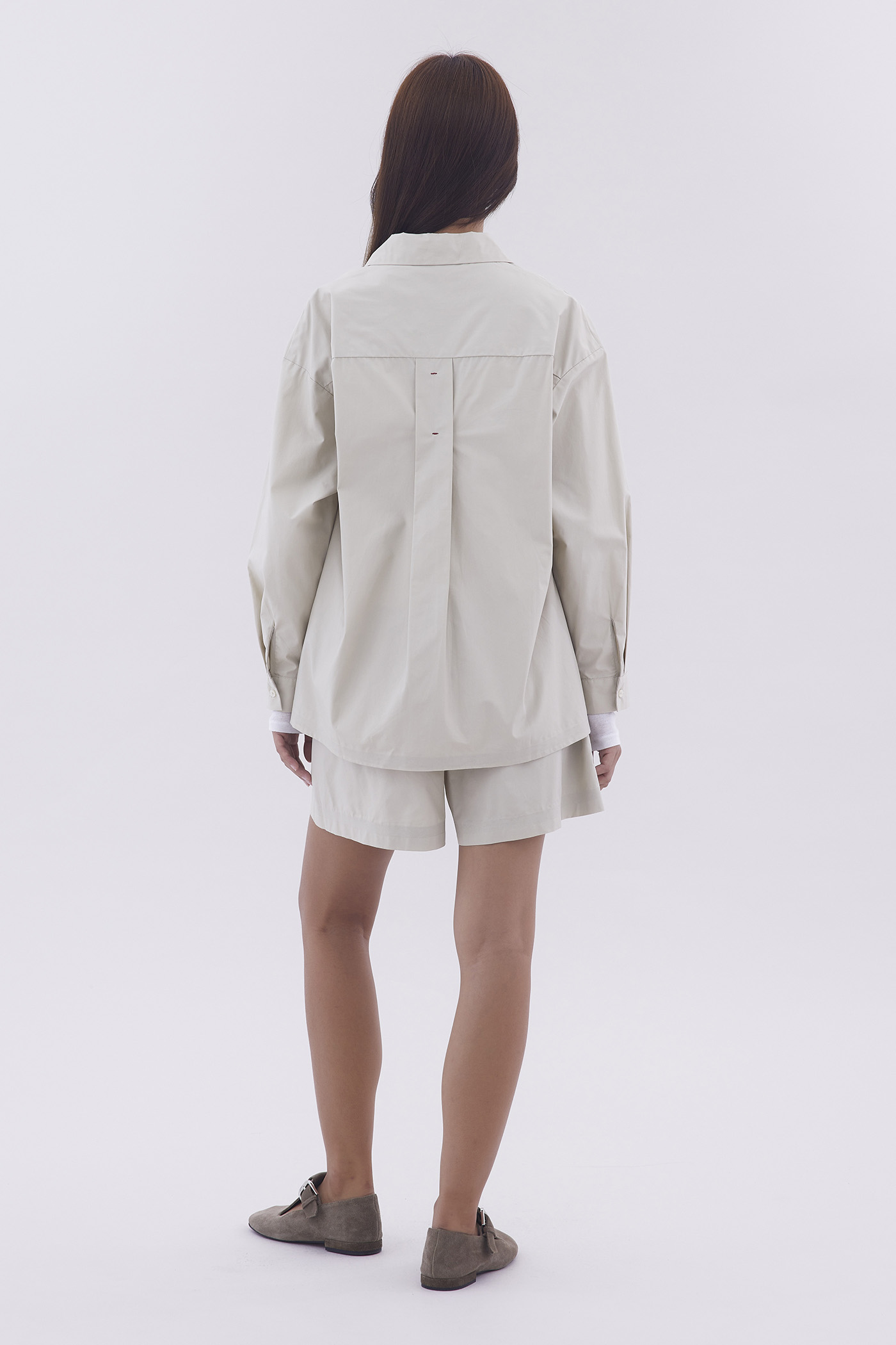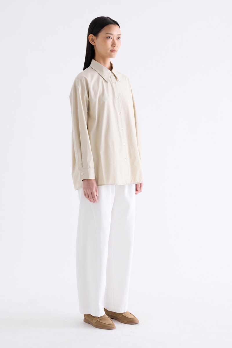 Cut from crisp and comfy cotton, this unisex button-down shirt features buttoned sleeves and a stitched back pleat. Worn in an oversized fit. Comes with a spare button.