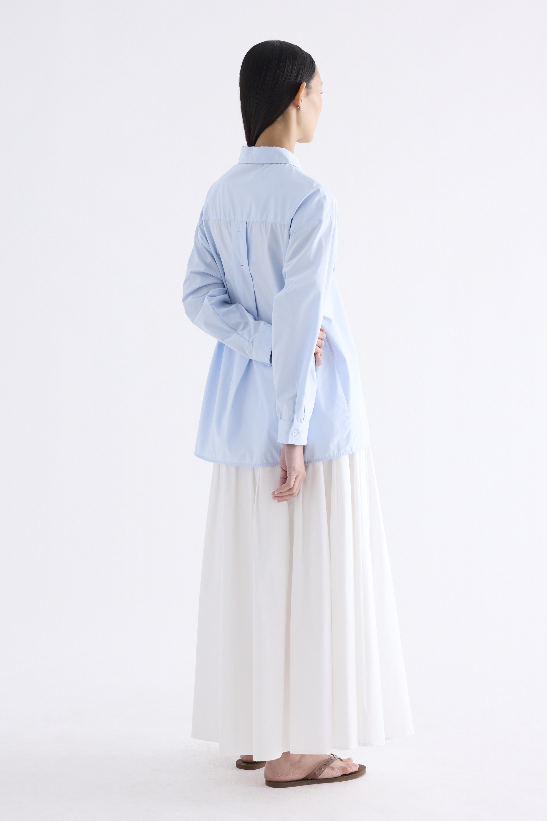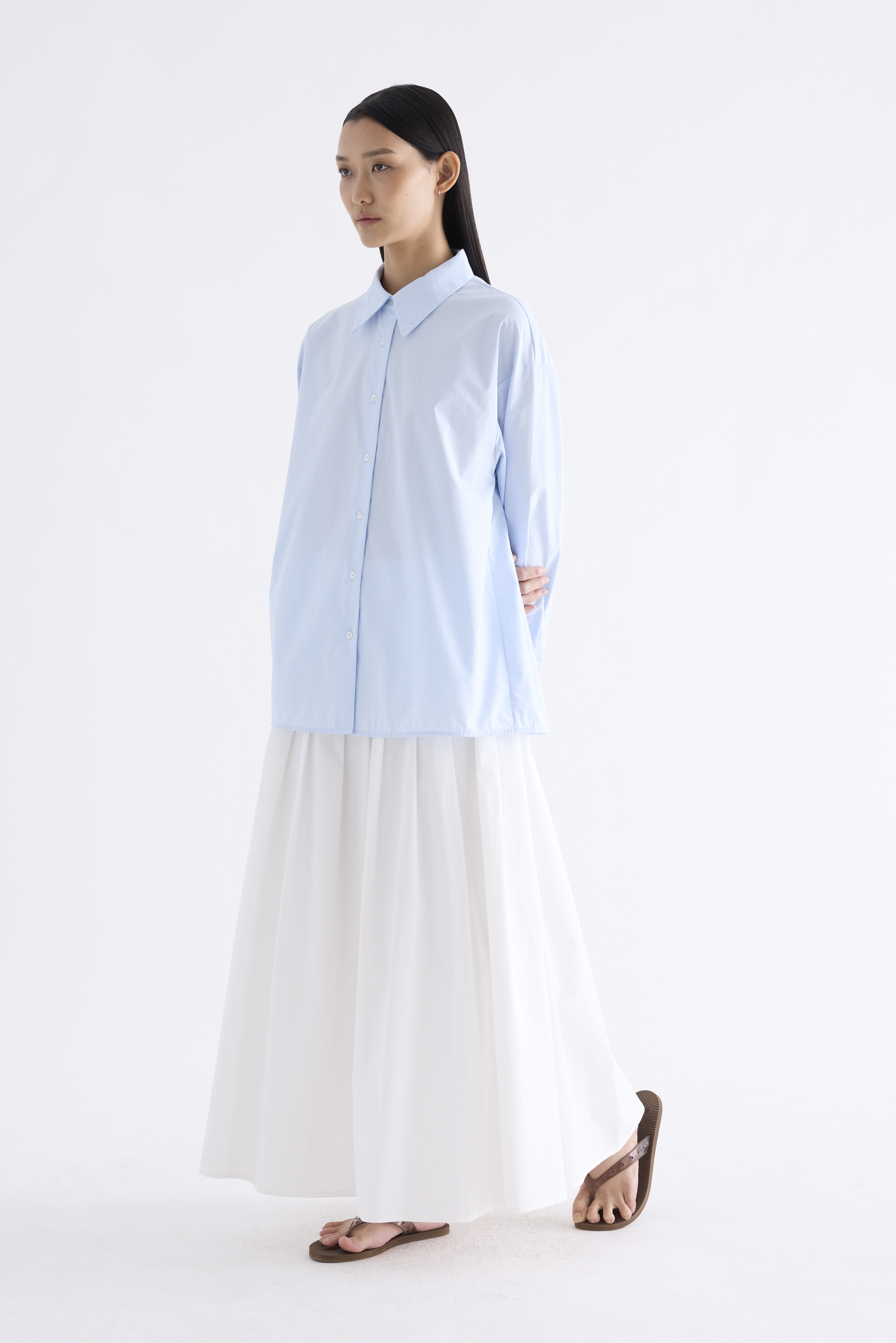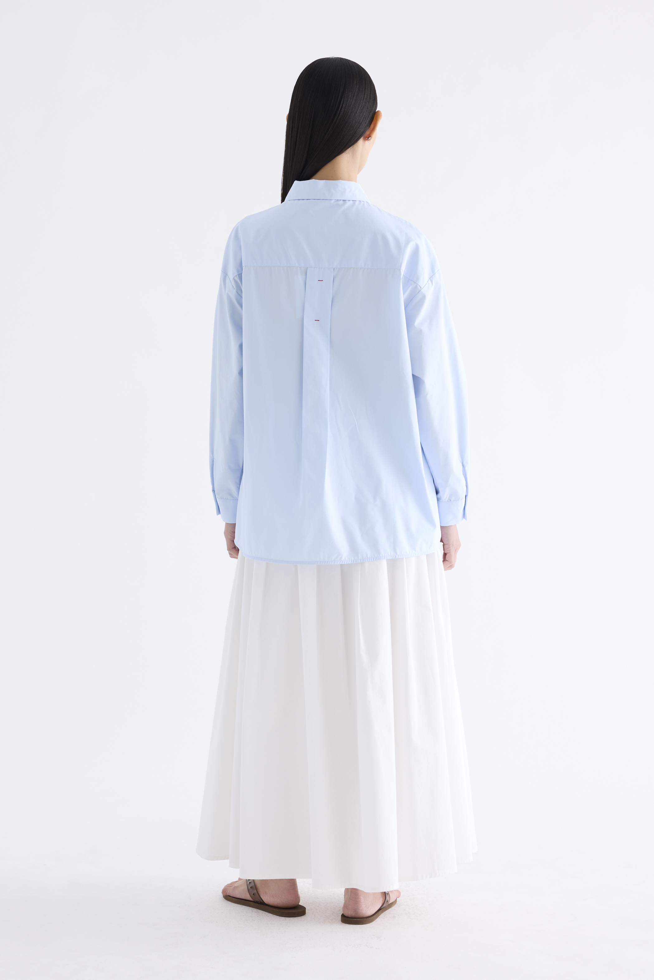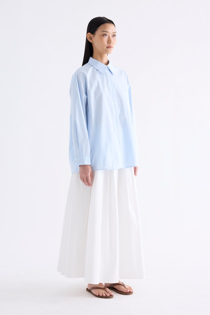 Cut from crisp and comfy cotton, this unisex button-down shirt features buttoned sleeves and a stitched back pleat. Worn in an oversized fit. Comes with a spare button.