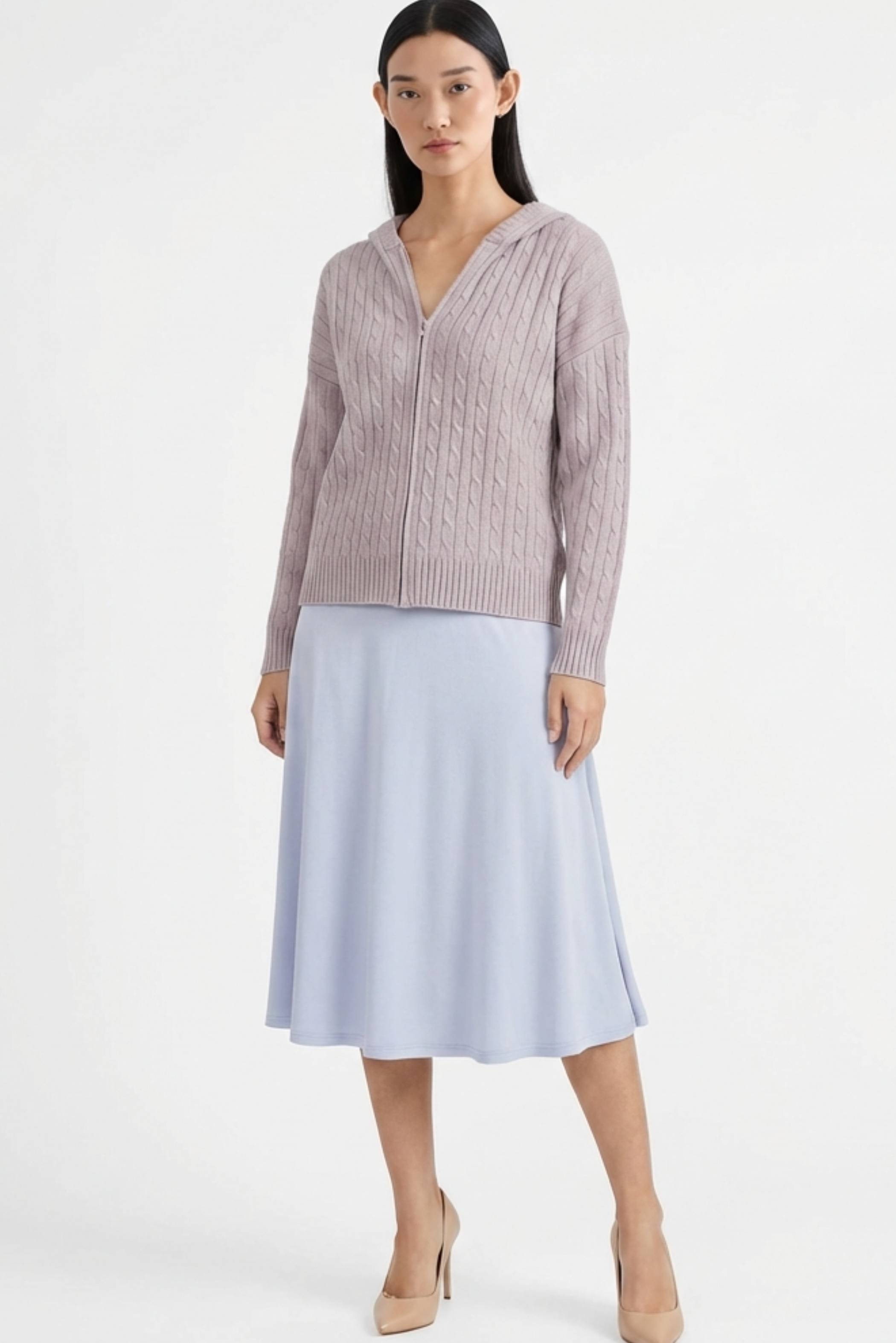 Sabrena Cable-Knit Zip-Up Hoodie