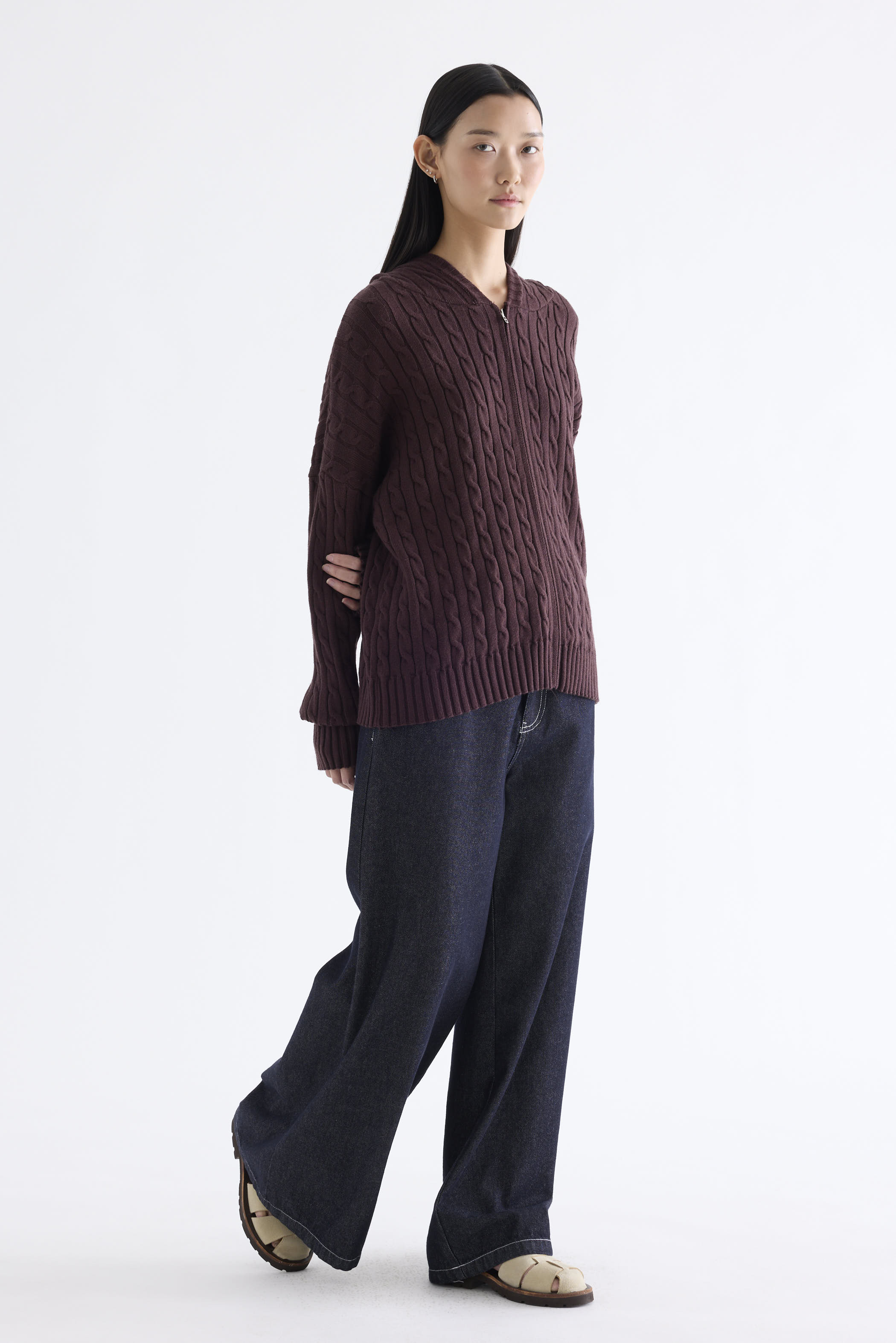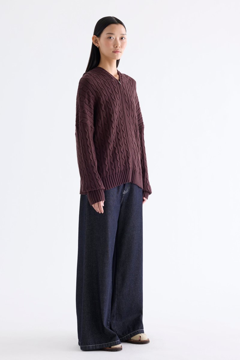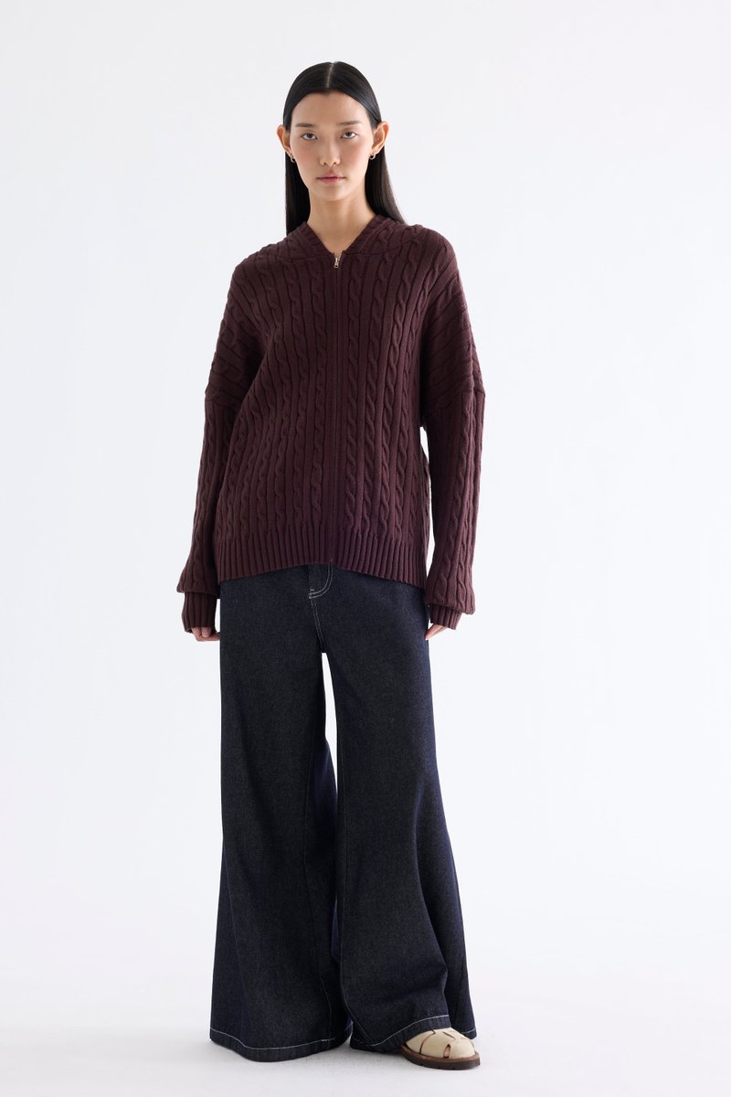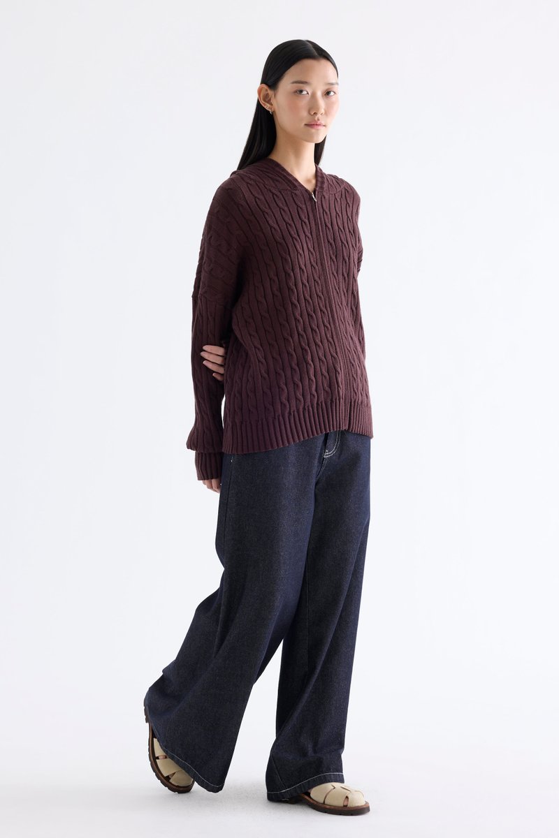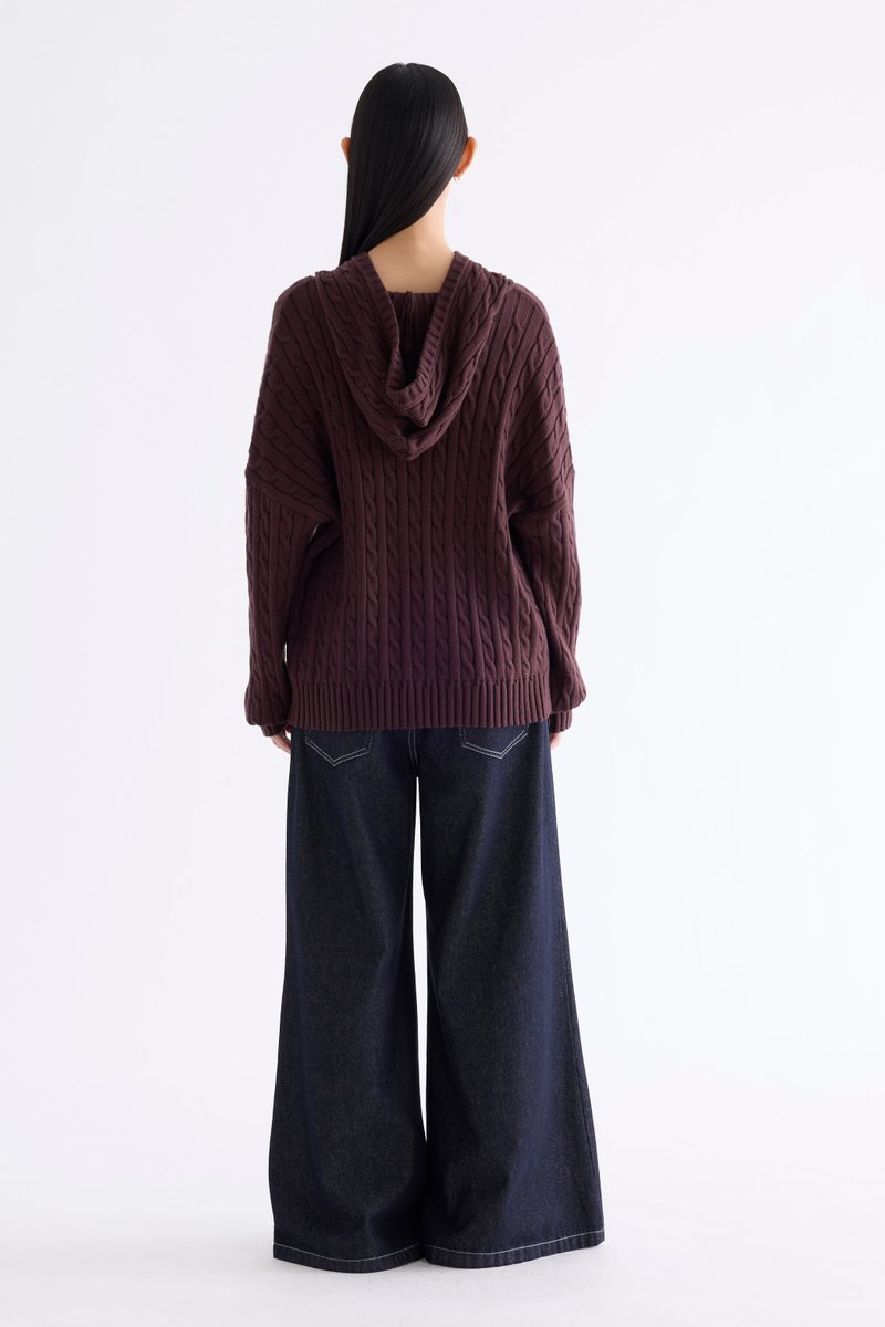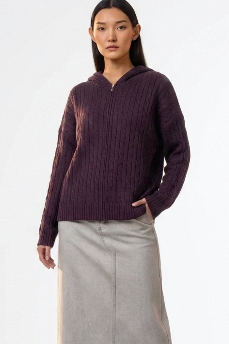 Sabrena Cable-Knit Zip-Up Hoodie