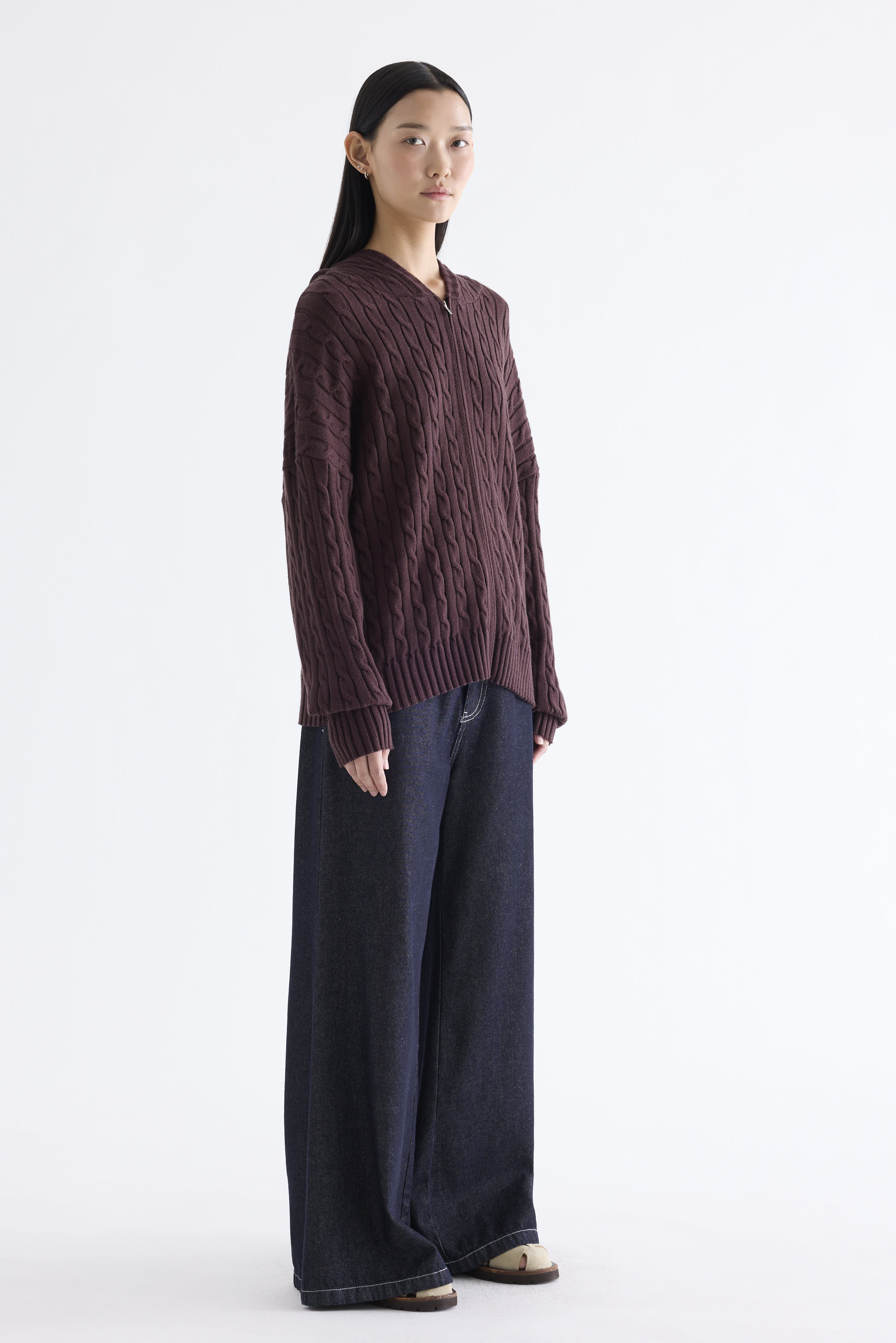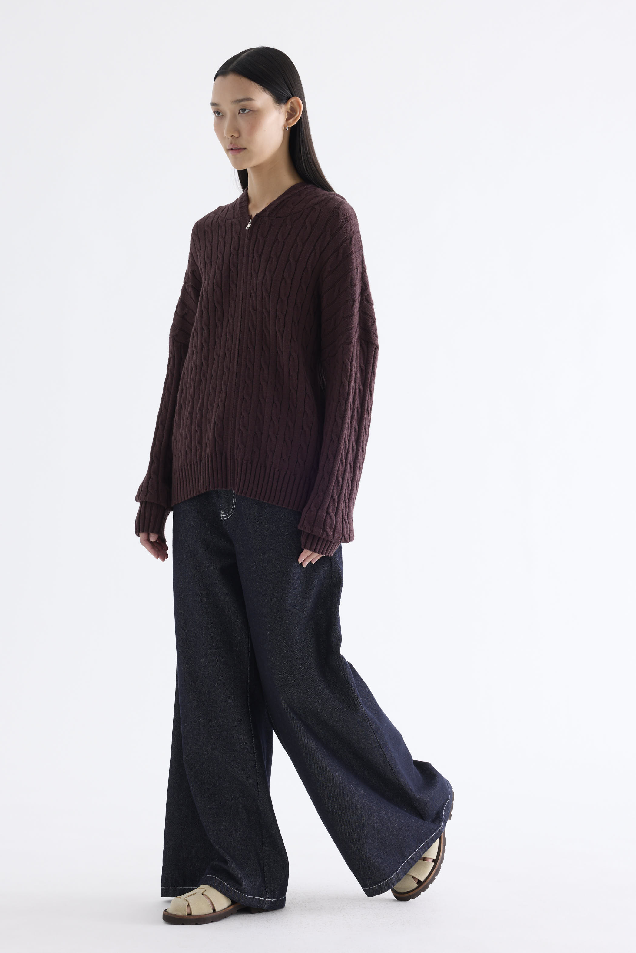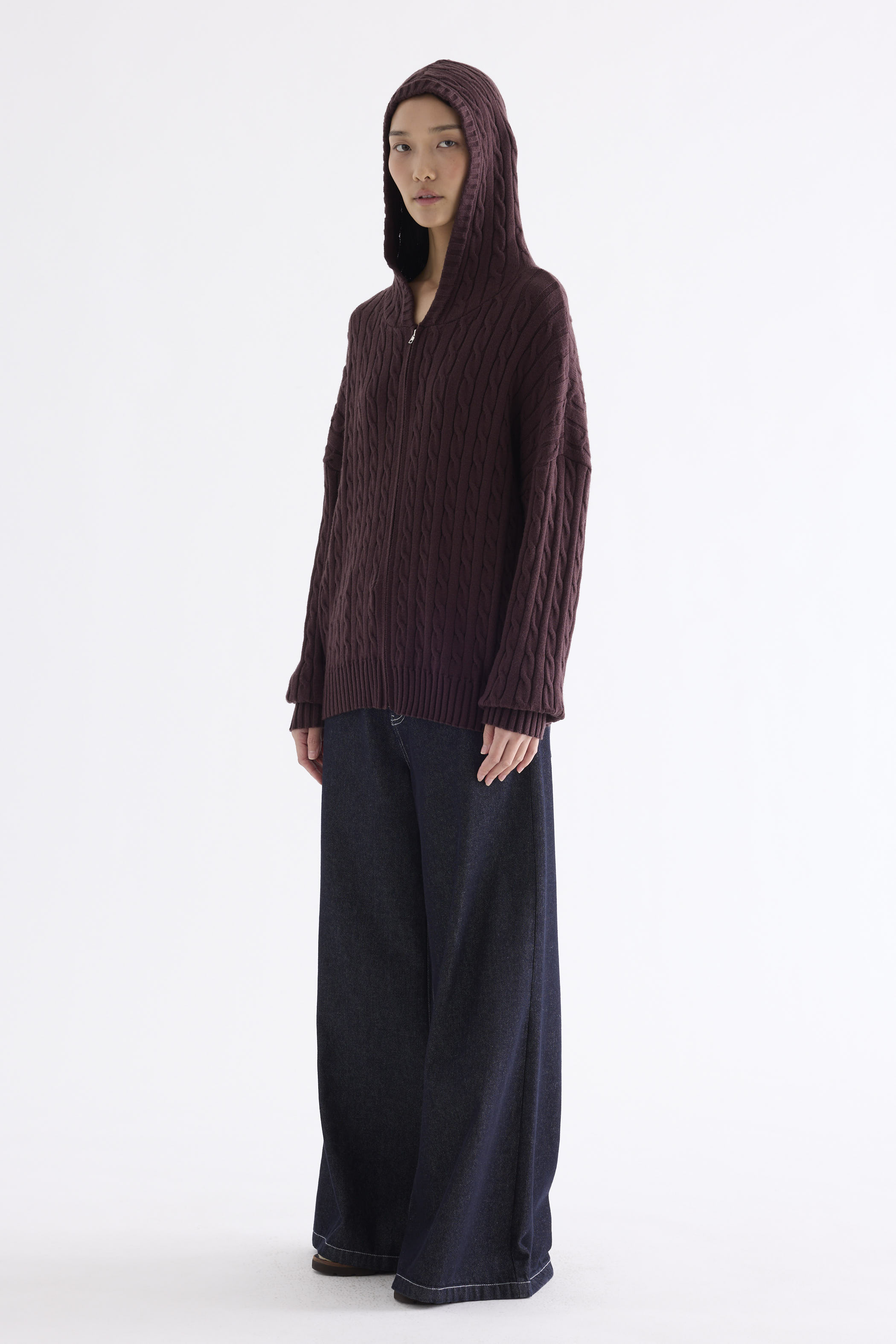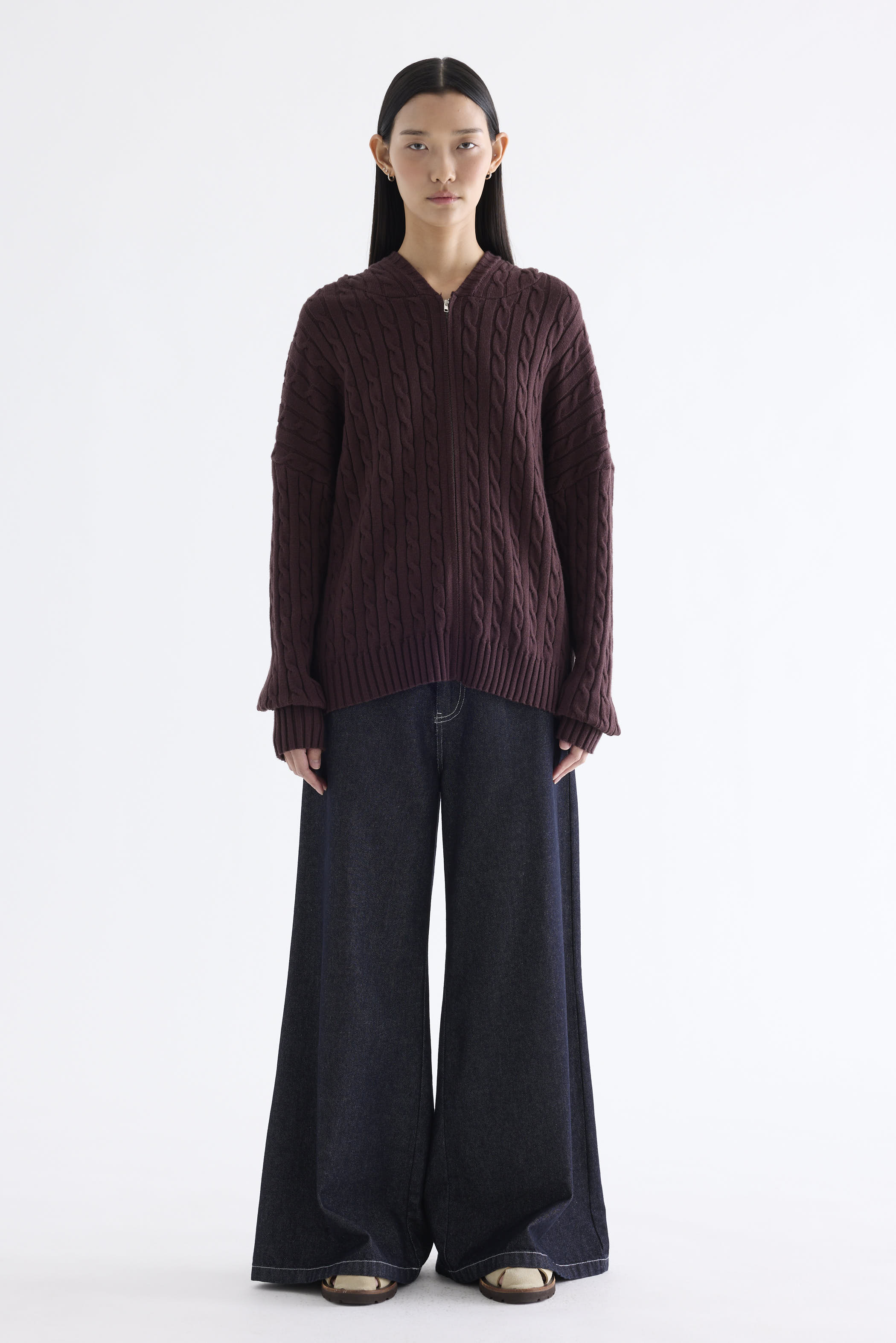 Sabrena Cable-Knit Zip-Up Hoodie