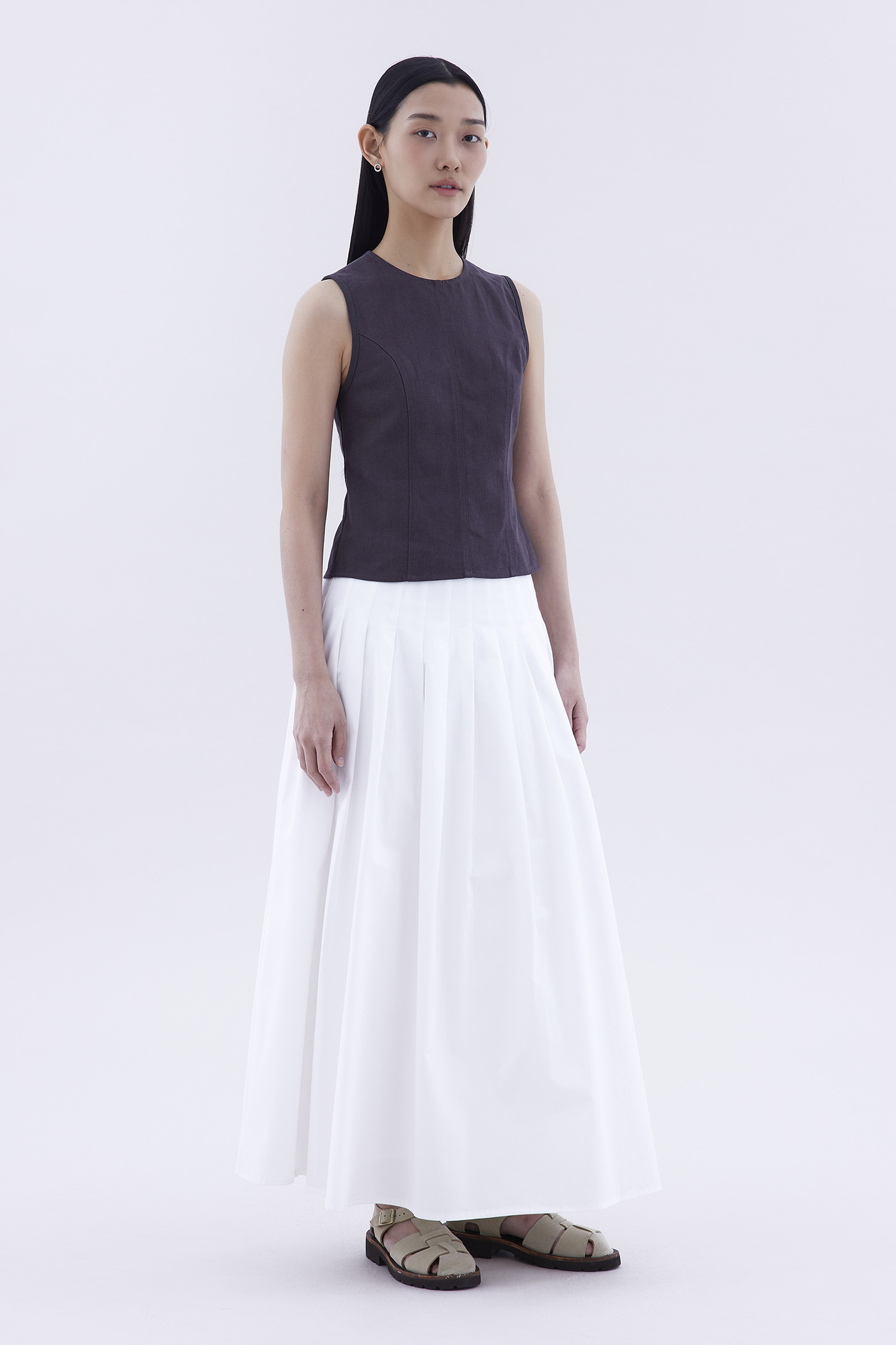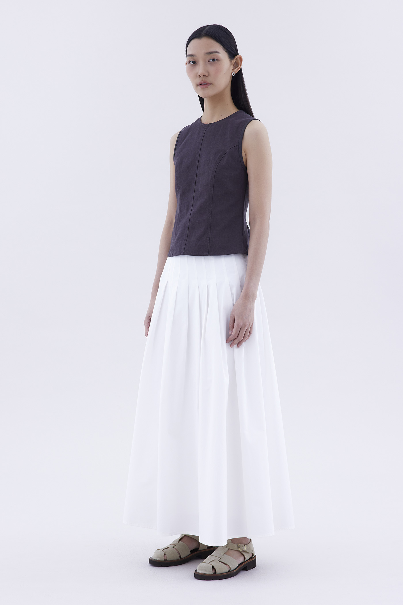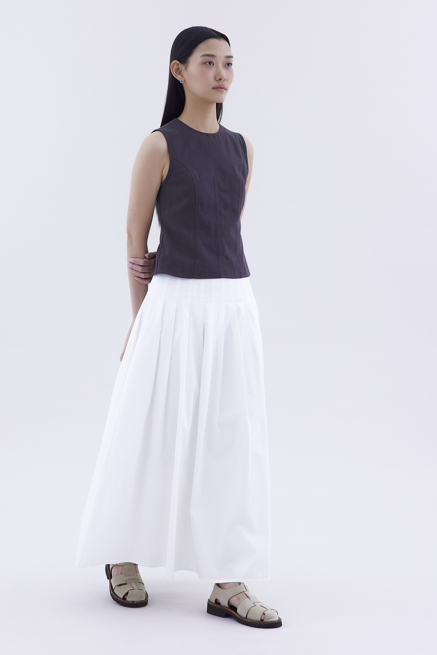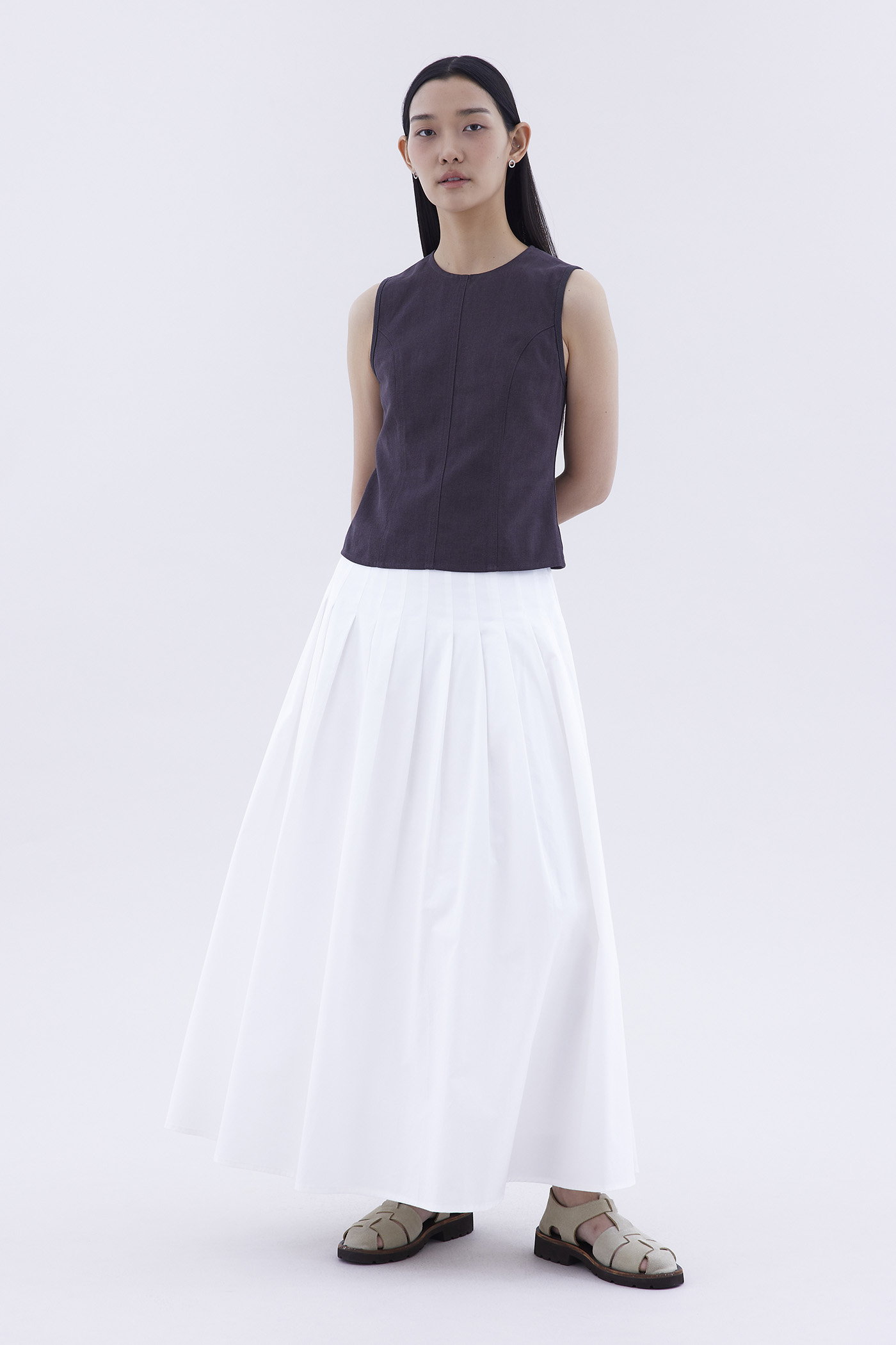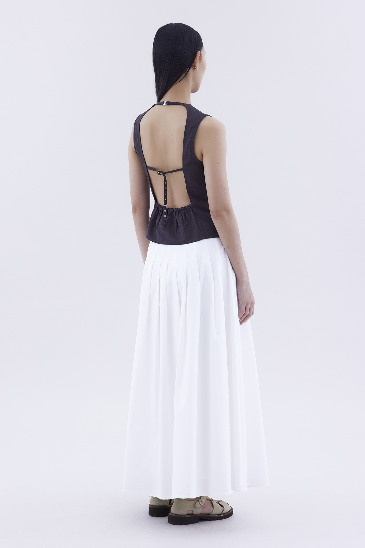 Twice as bold. Made from softly structured fabric, this sleeveless top features a round neckline, panelled construction and an elasticated back opening with connecting straps. Worn in a slim fit.