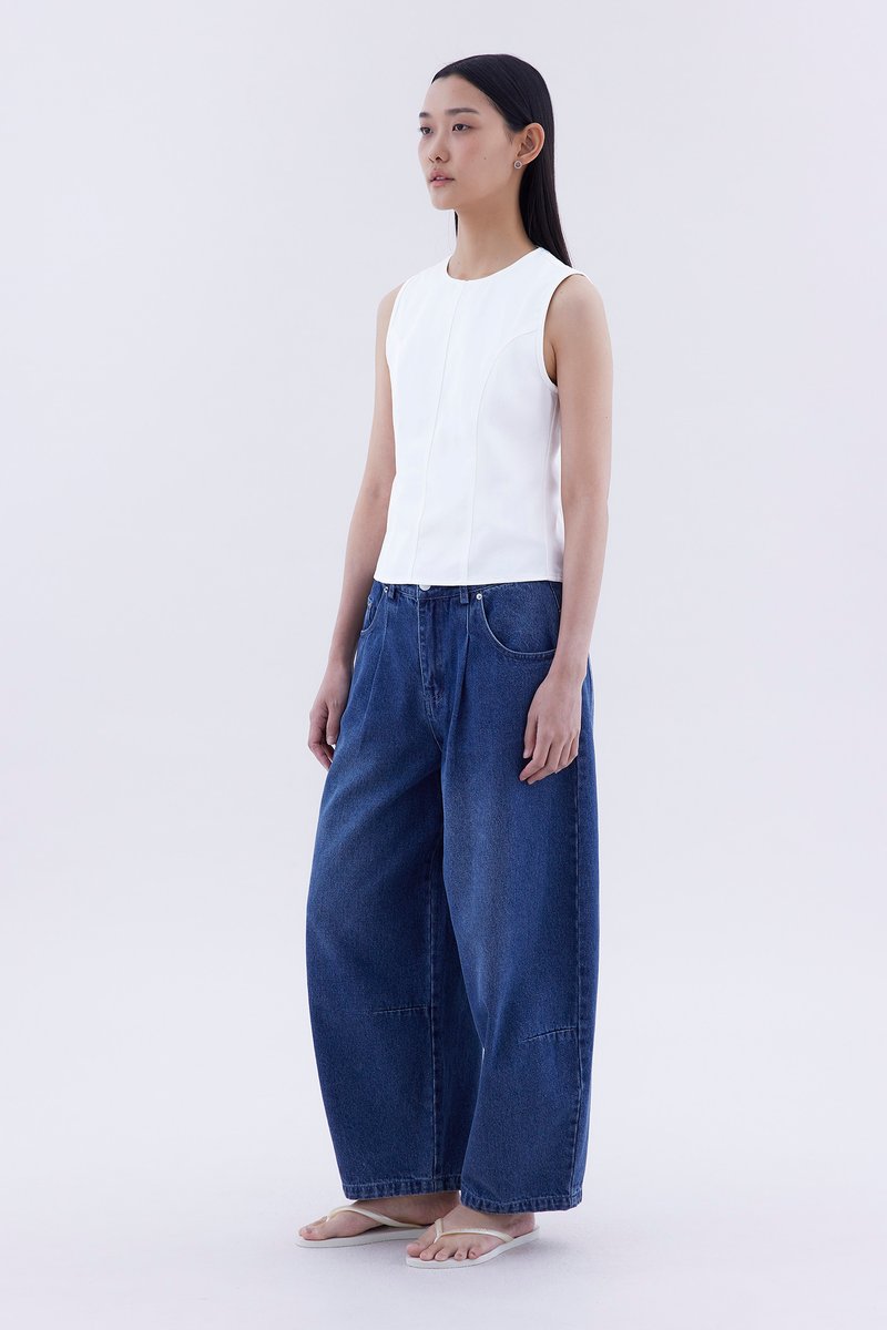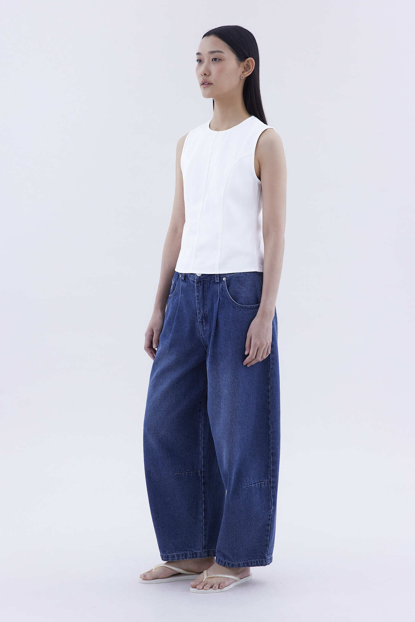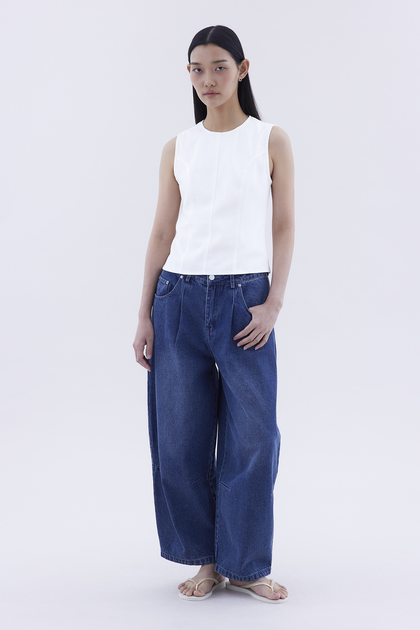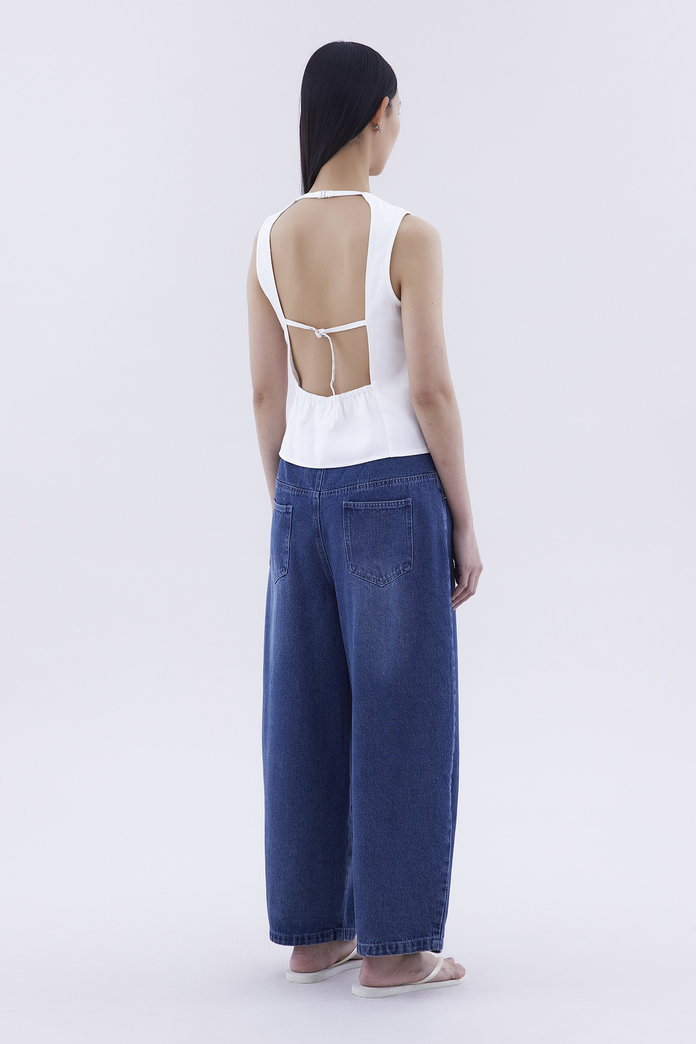 Twice as bold. Made from softly structured fabric, this sleeveless top features a round neckline, panelled construction and an elasticated back opening with connecting straps. Worn in a slim fit.