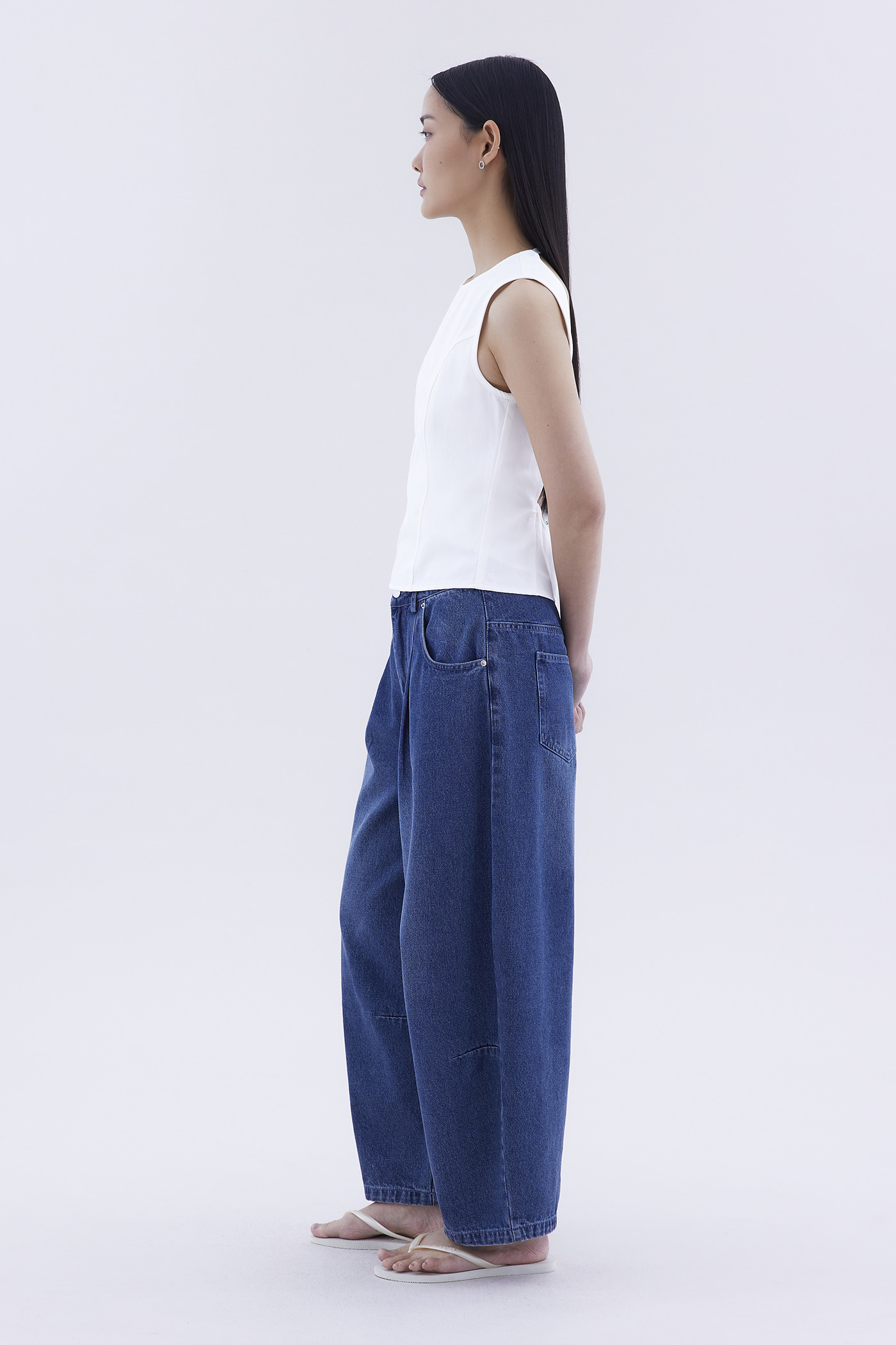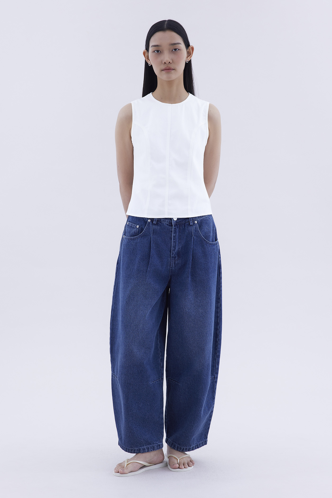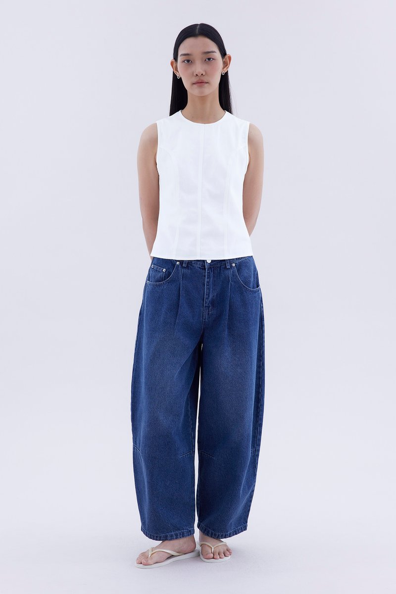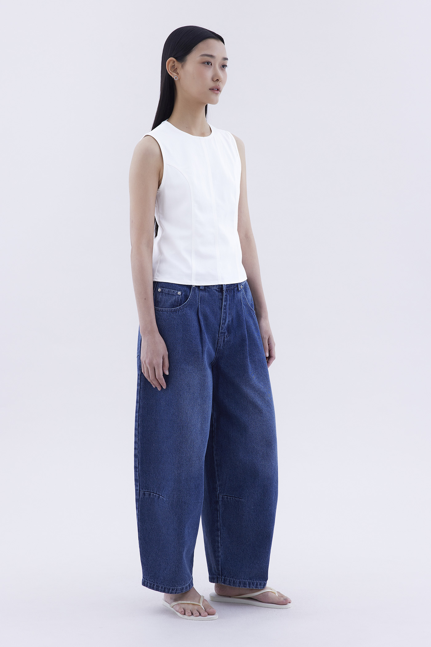 Twice as bold. Made from softly structured fabric, this sleeveless top features a round neckline, panelled construction and an elasticated back opening with connecting straps. Worn in a slim fit.