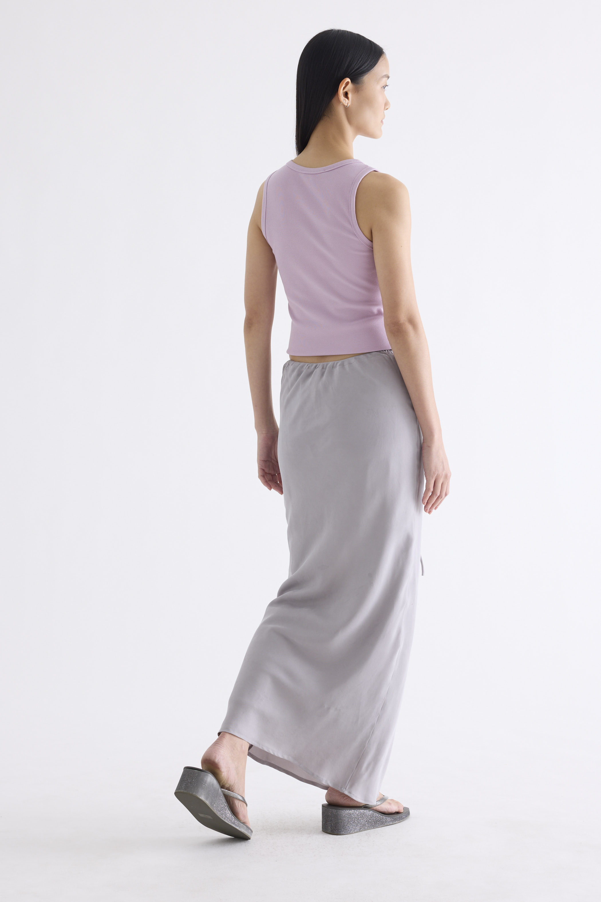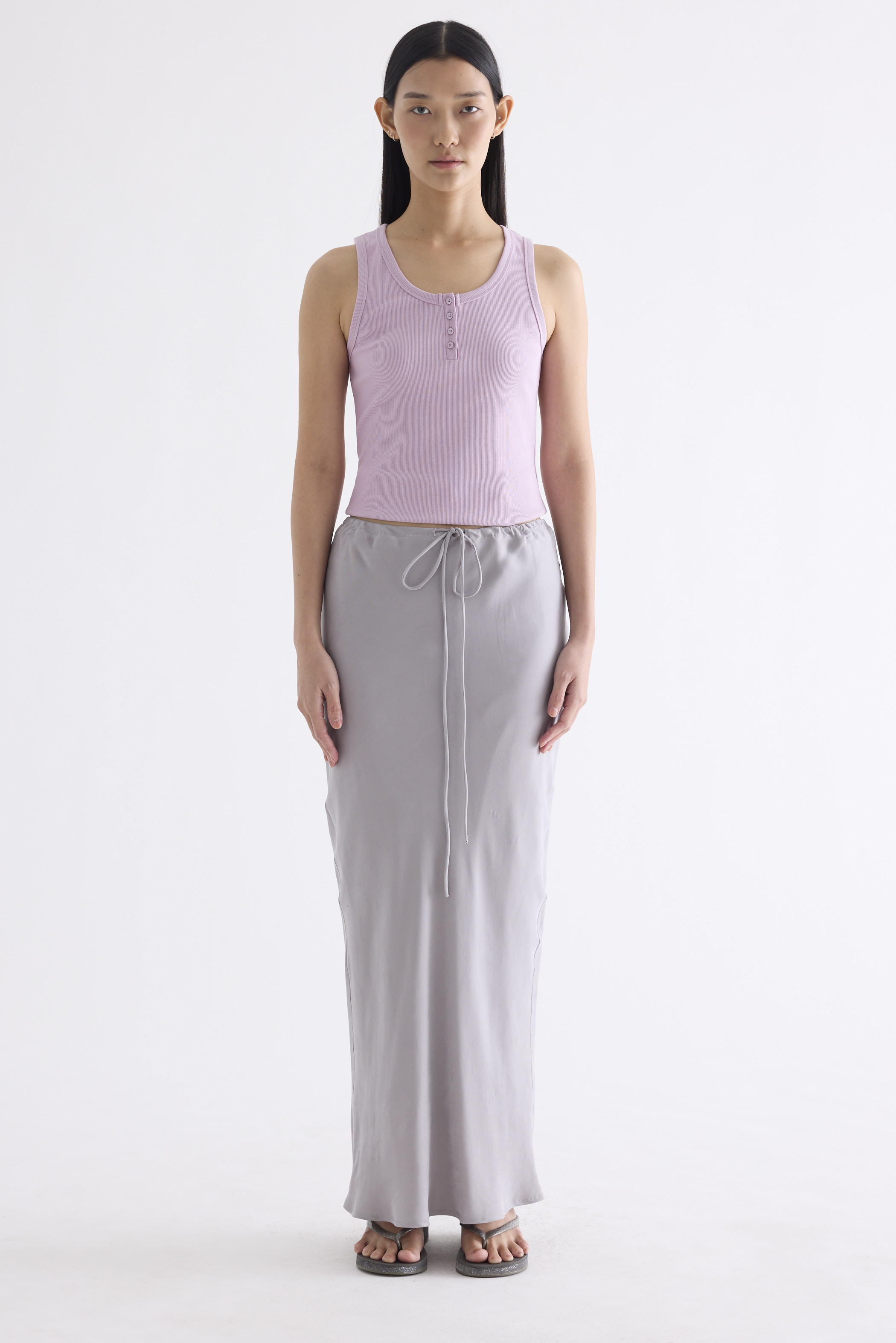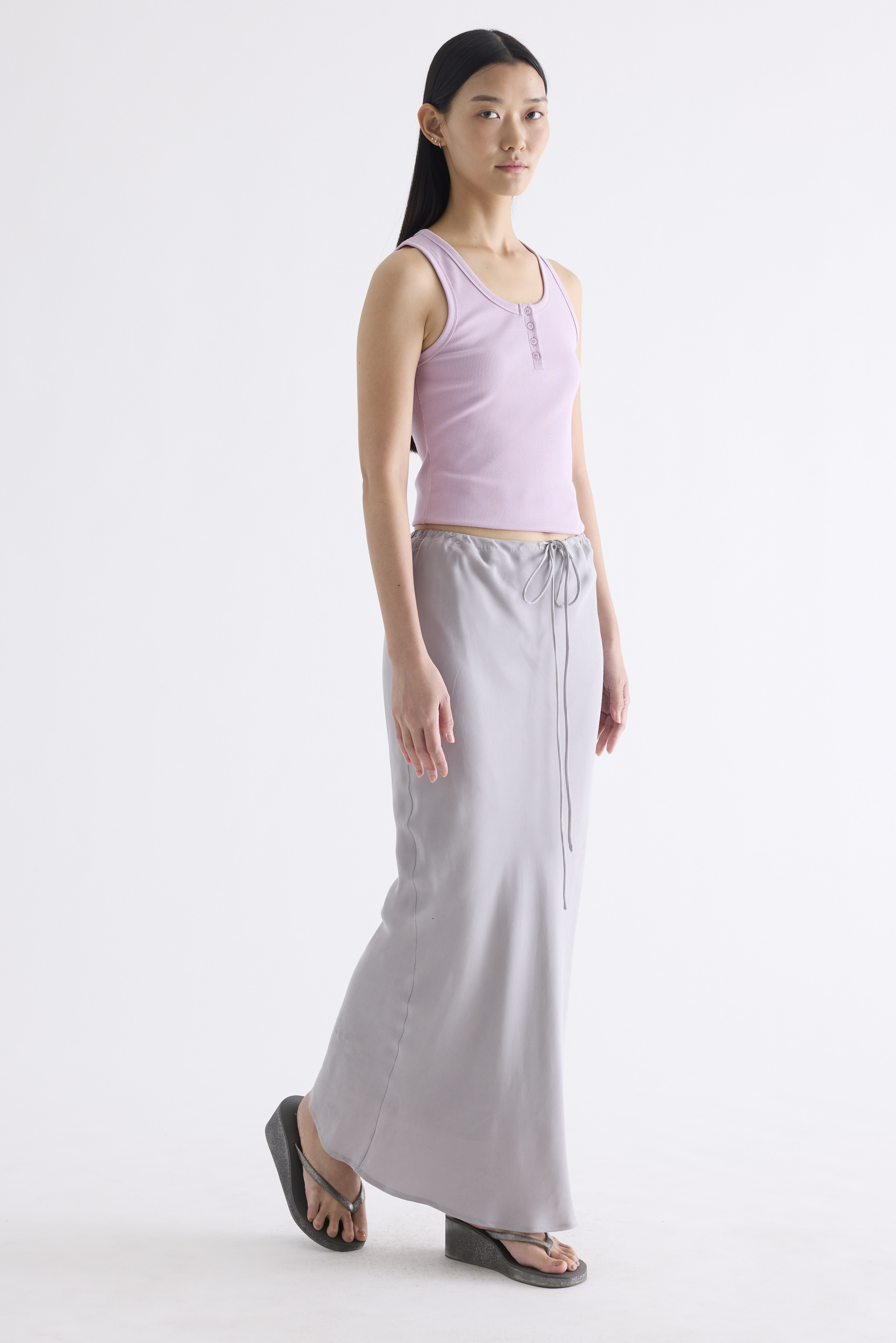 Fluid forms. Made from soft and smooth fabric, this maxi skirt features a bias-cut silhouette with an elasticated drawstring waistband. Worn in a slim fit.
