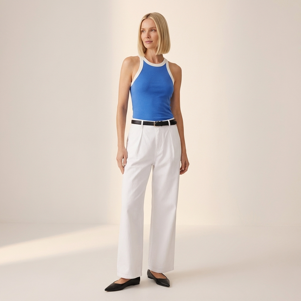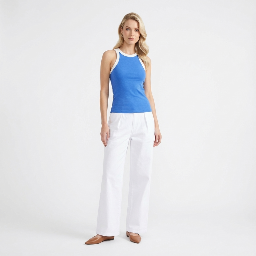 Stand out. Made from soft and ribbed knit, this sleeveless tank features a round neckline, cut-in shoulders and contrast seams. Worn in a slim fit.